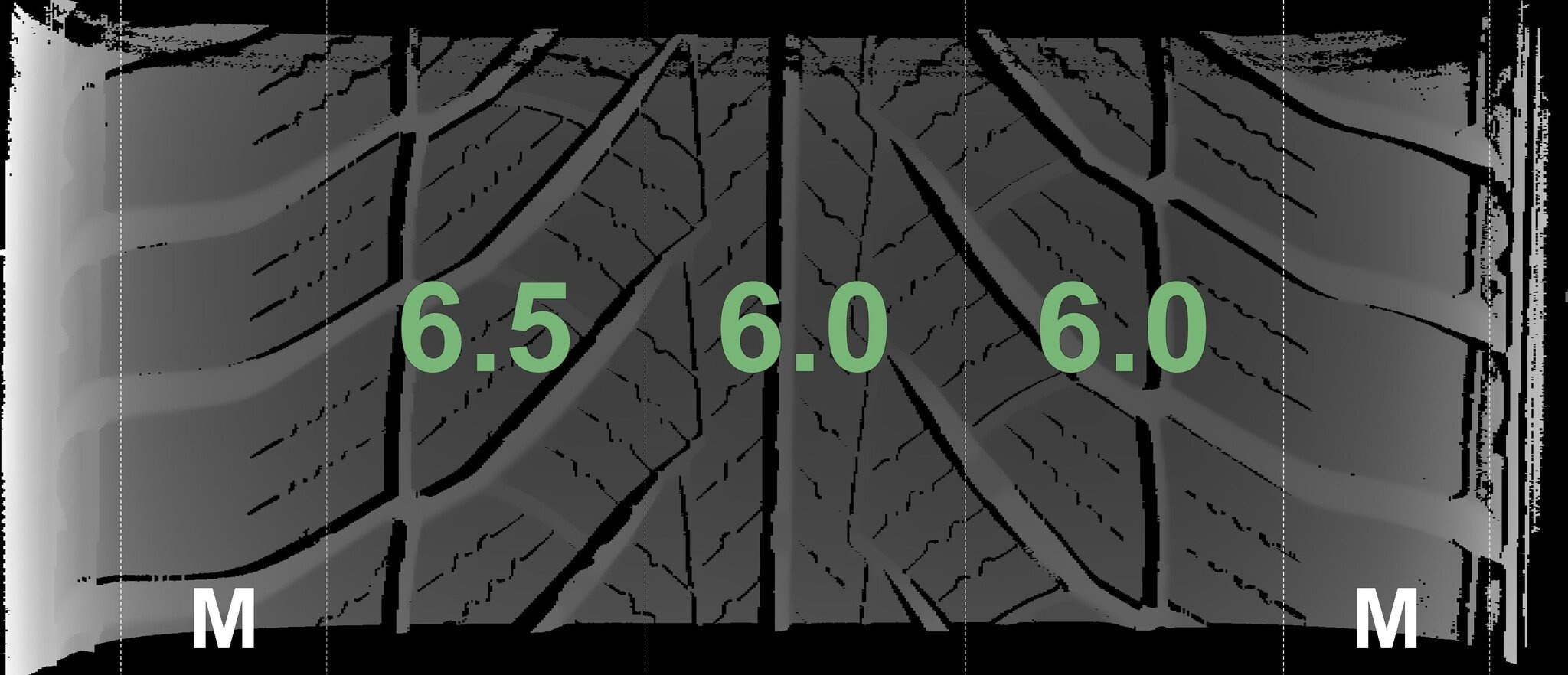 | Zustand | Profiltiefe | DOT | Hinterachse Rechts | Gebraucht | 6.5 mm | 4117 |