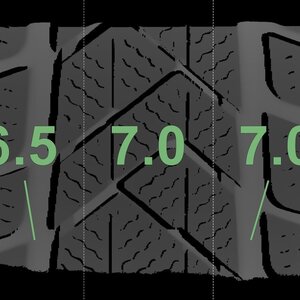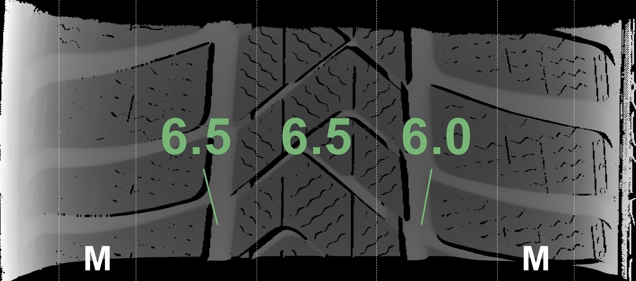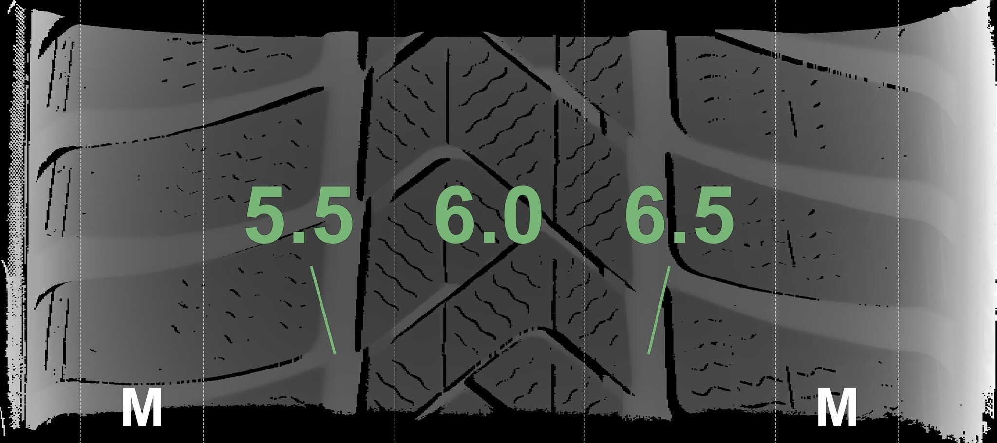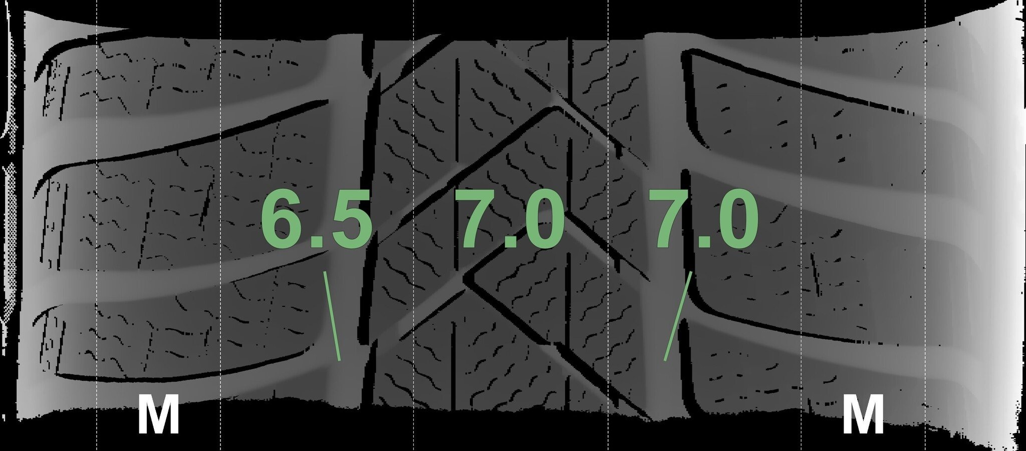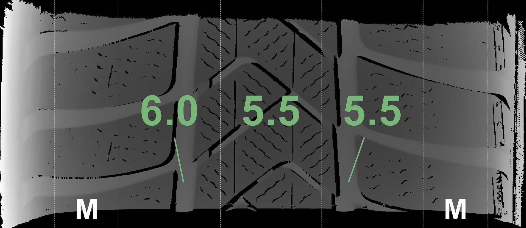 Die gemessenen Profiltiefen und die Details der Felgen sind oben dargestellt.
