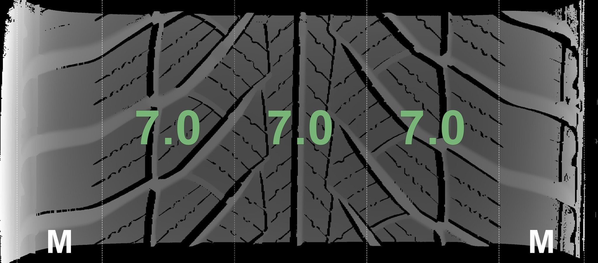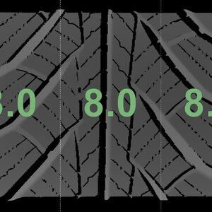 Die gemessenen Profiltiefen und die Details der Felgen sind oben dargestellt.