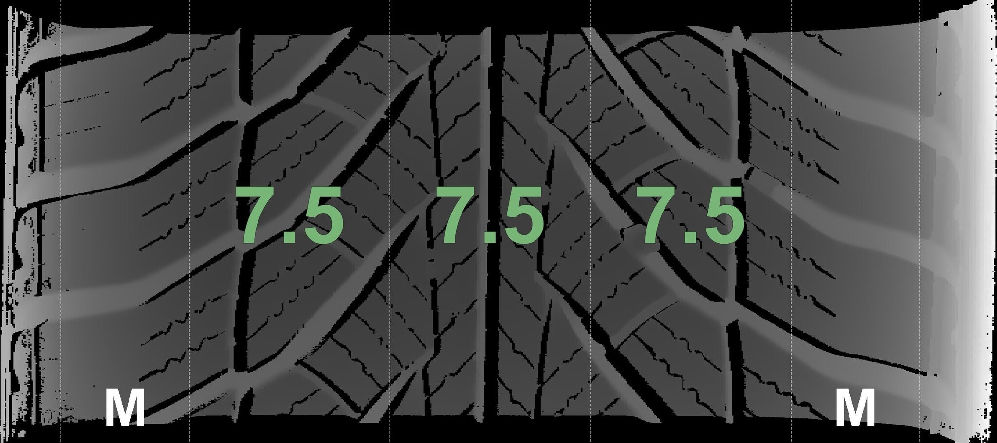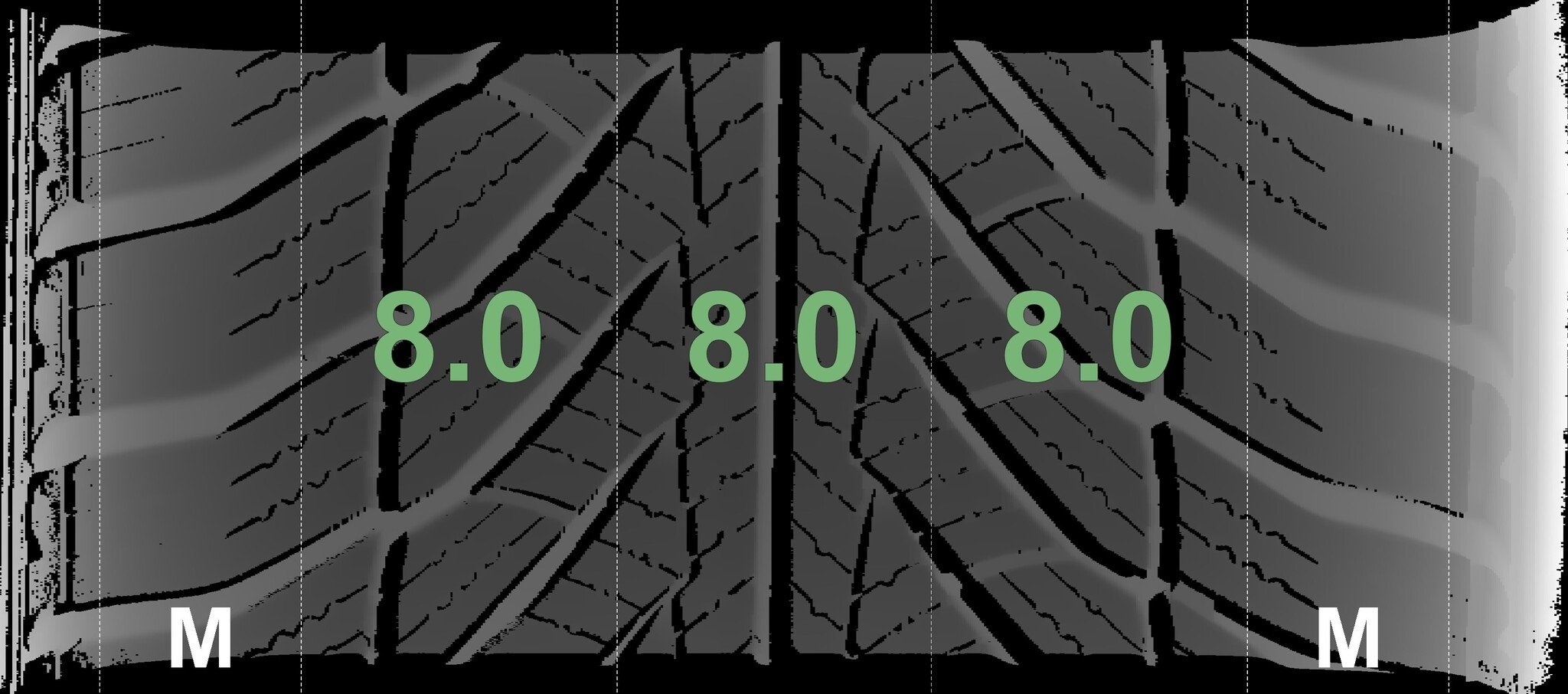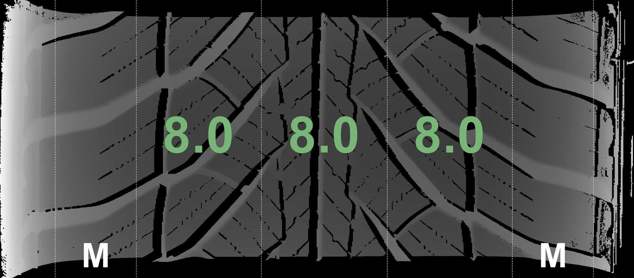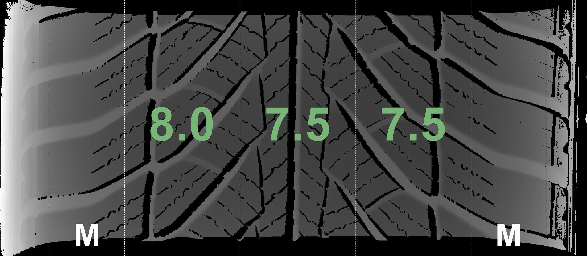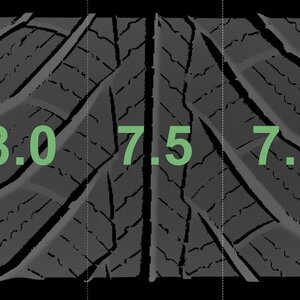 Die gemessenen Profiltiefen und die Details der Felgen sind oben dargestellt.
