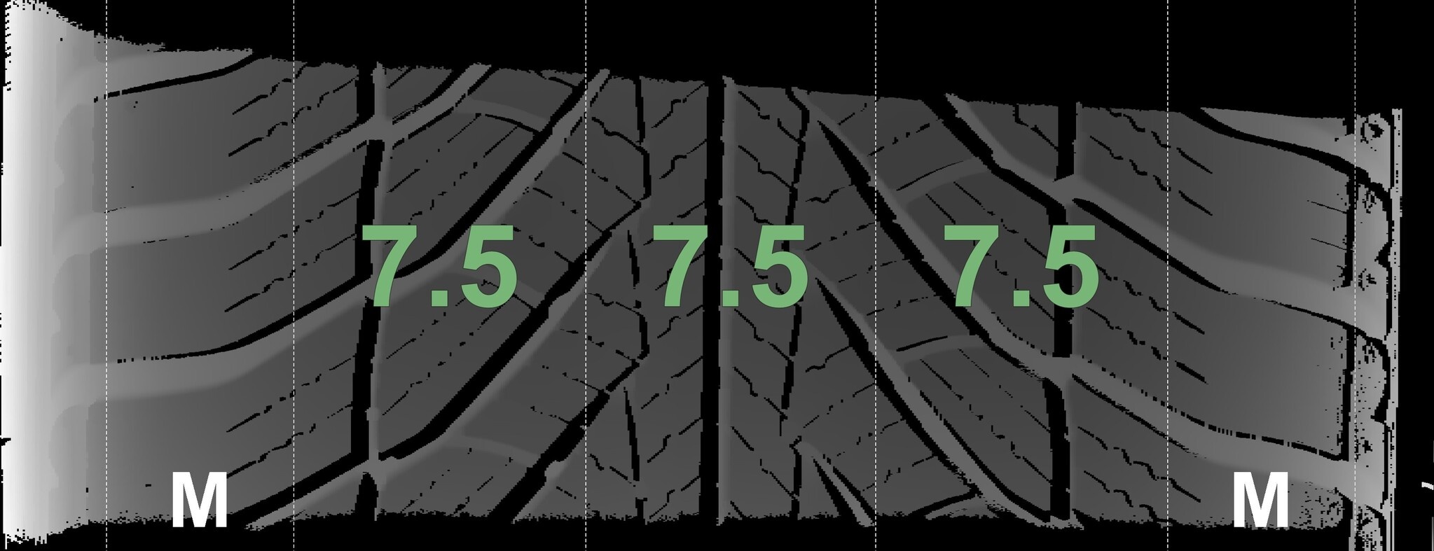 | Zustand | Profiltiefe | DOT | Vorderachse Links | Gebraucht | 7.5 mm | 2522 |