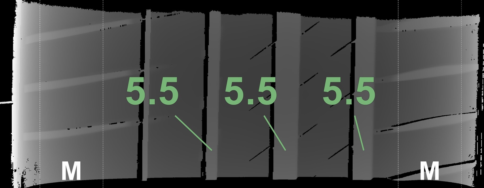 | Zustand | Profiltiefe | DOT | Hinterachse Links | Neu | 5.8 mm | 4625 |