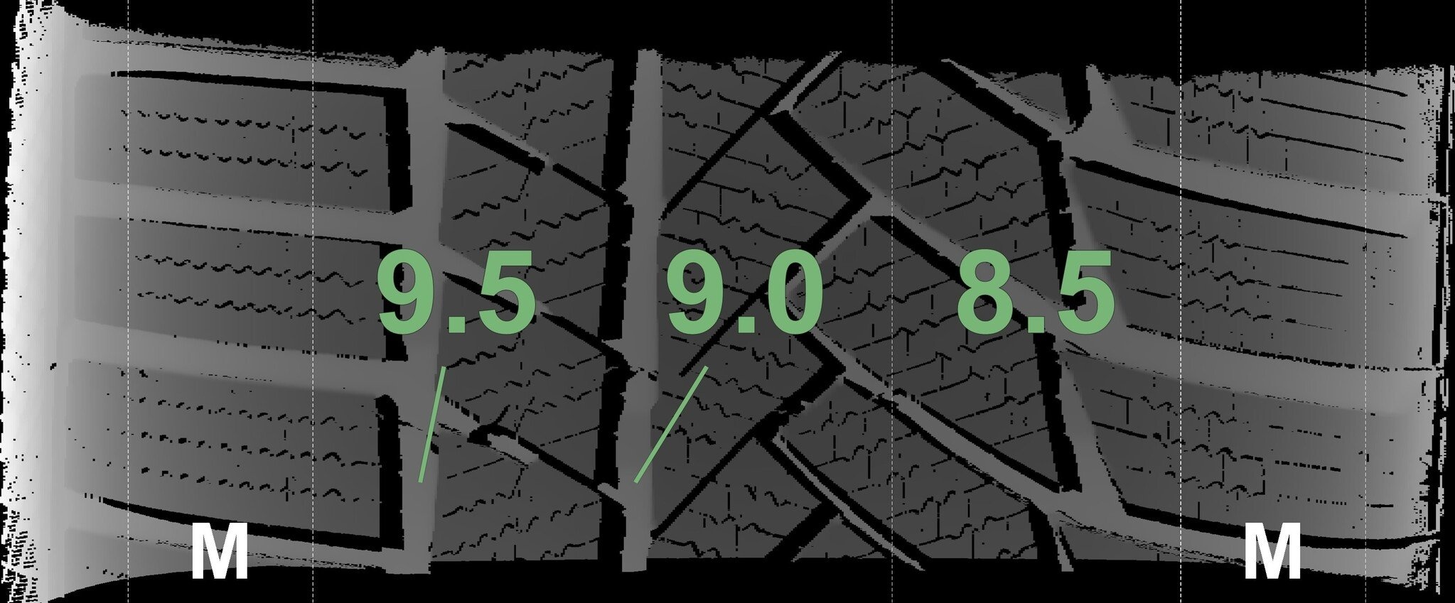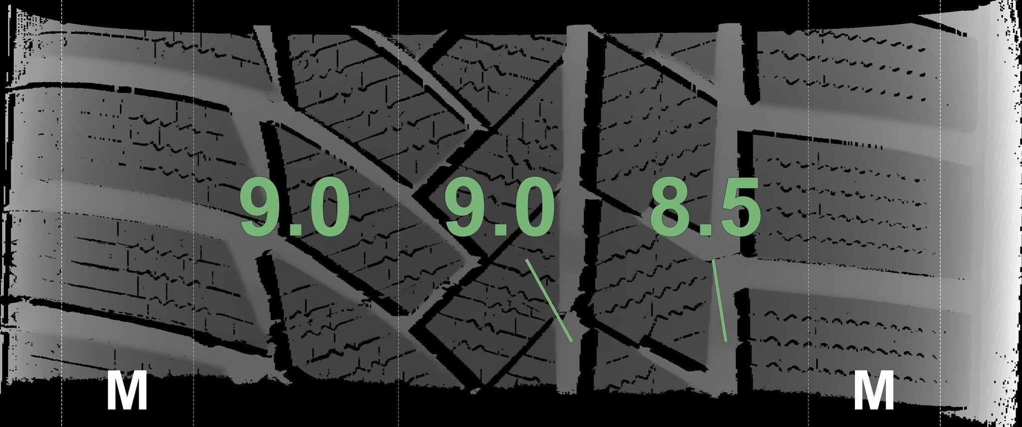 | Zustand | Profiltiefe | DOT | Vorderachse Links | Neu | 9.0 mm | 4125 |