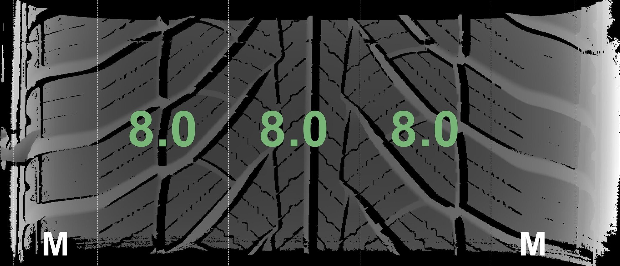 | Zustand | Profiltiefe | DOT | Vorderachse Links | Gebraucht | 8.0 mm | 1623 |