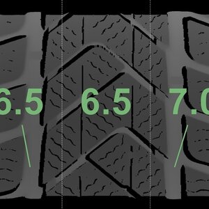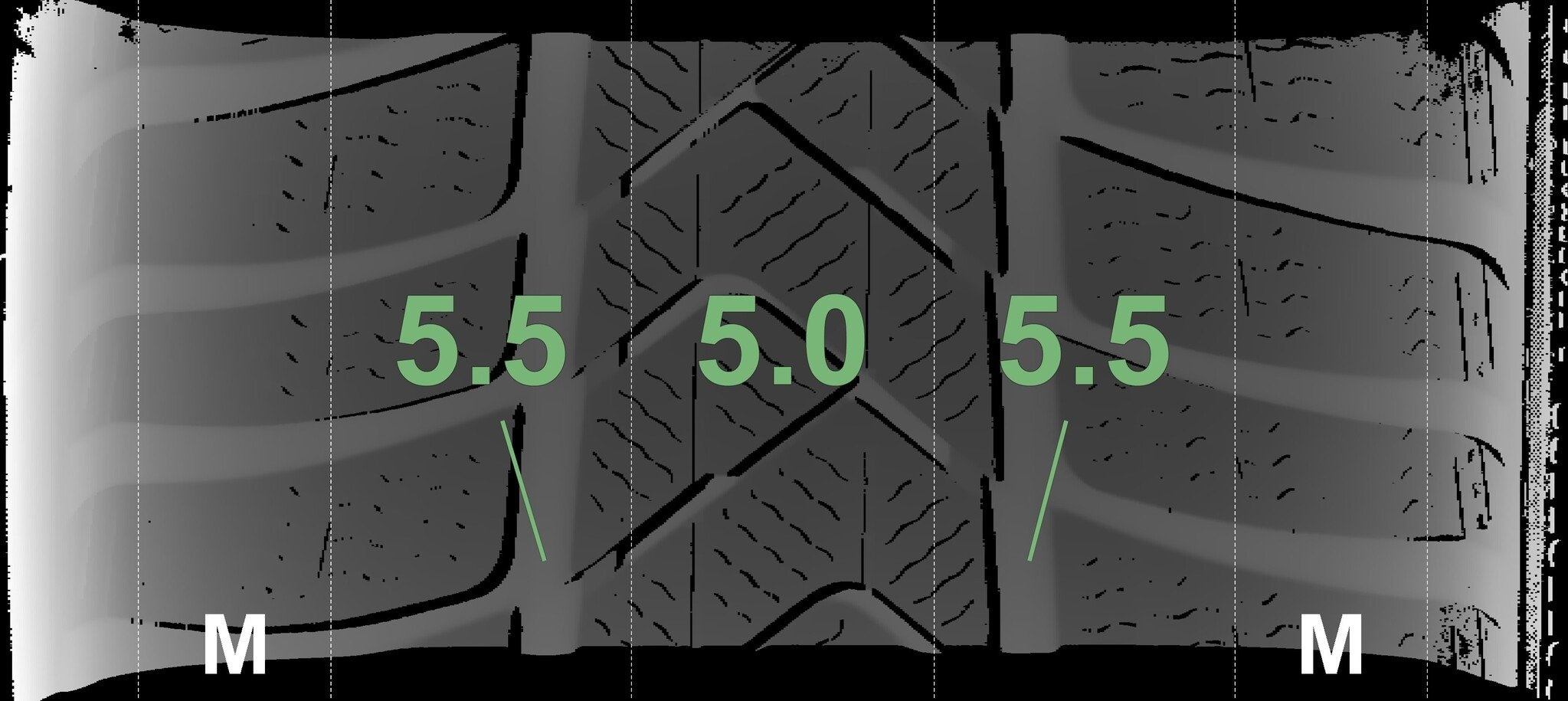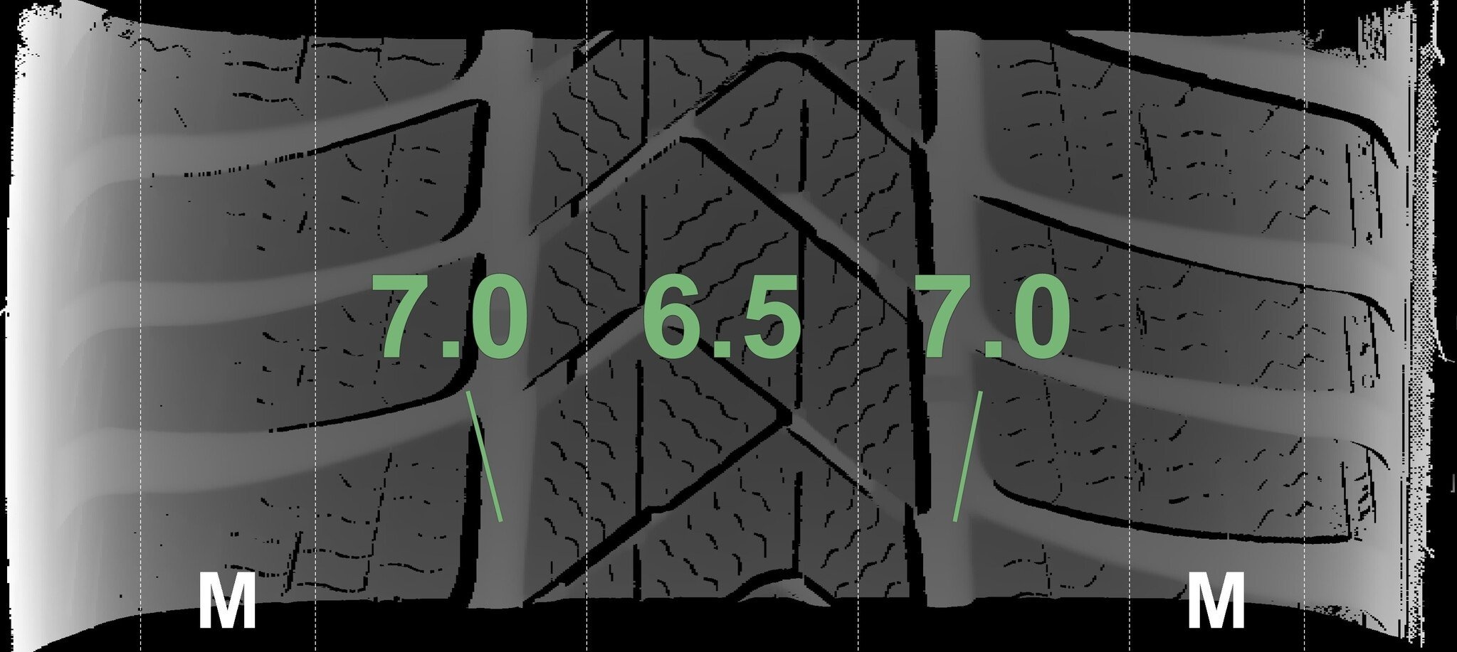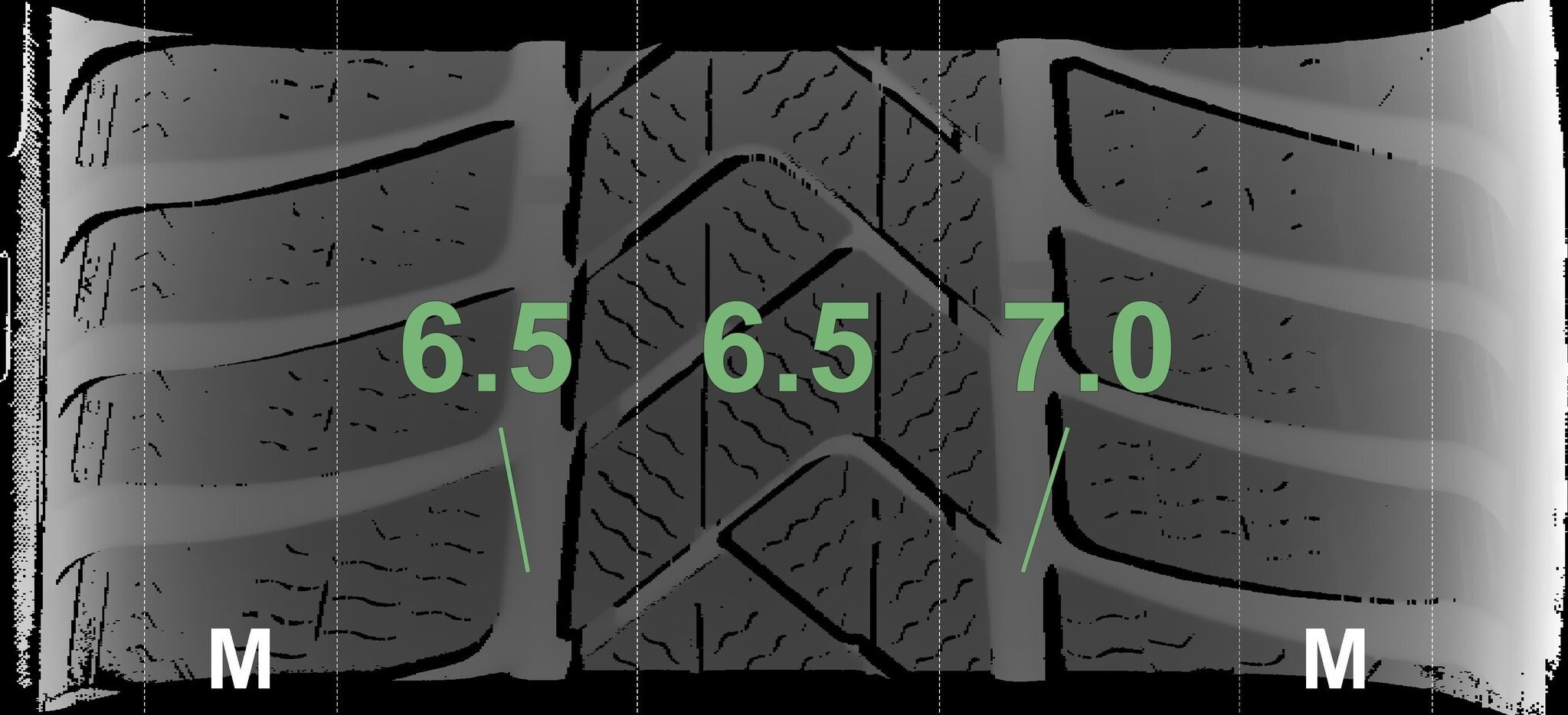 Die gemessenen Profiltiefen und die Details der Felgen sind oben angegeben.
