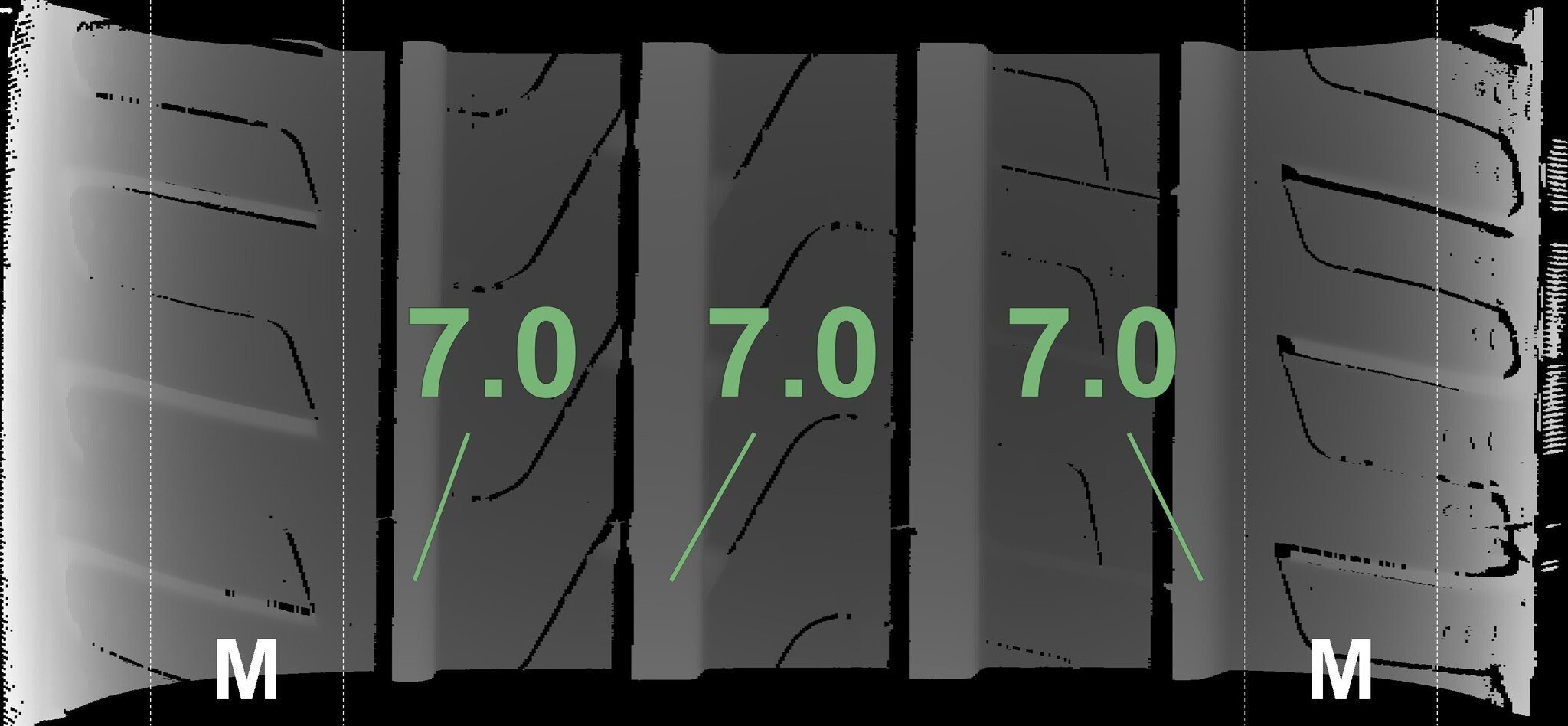 | Zustand | Profiltiefe | DOT | Vorderachse Links | Neu | 7.0 mm | 0925 |