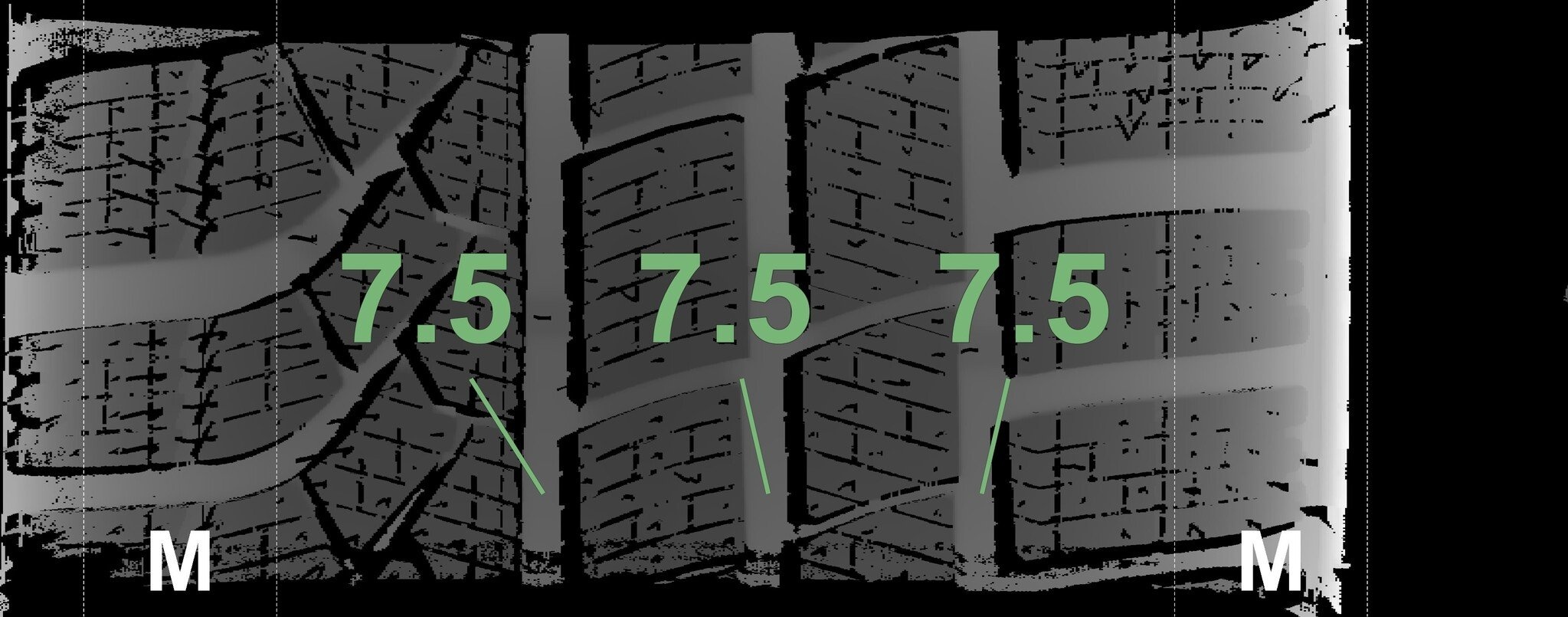 | Zustand | Profiltiefe | DOT | Vorderachse Rechts | Neu | 7.5 mm | 2023 |