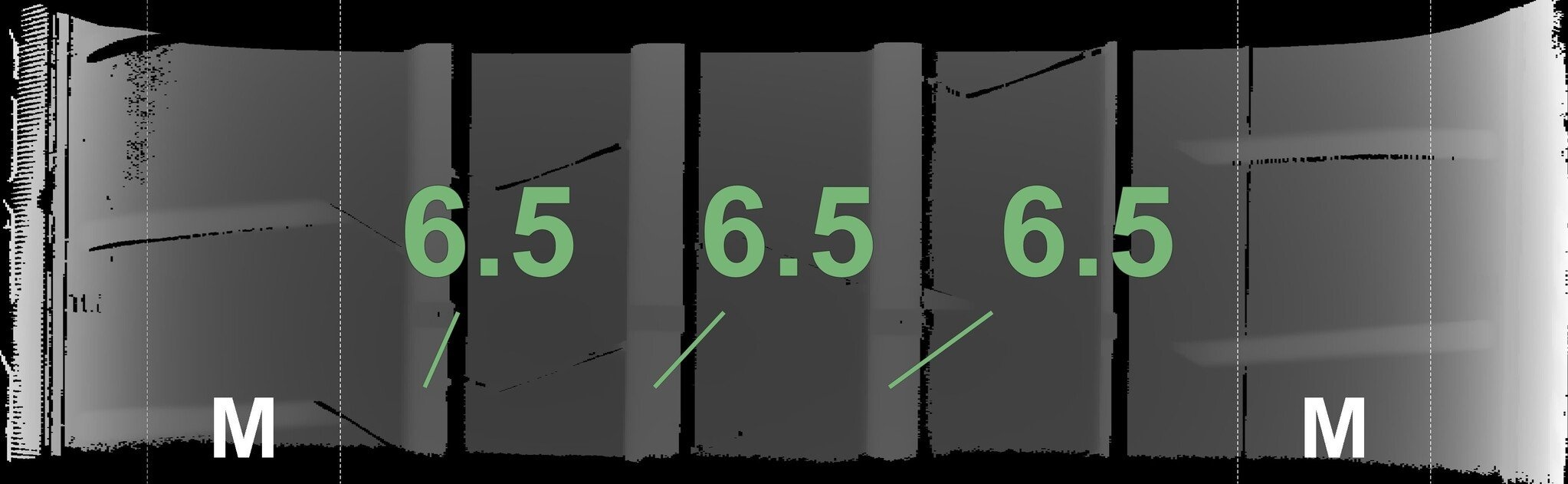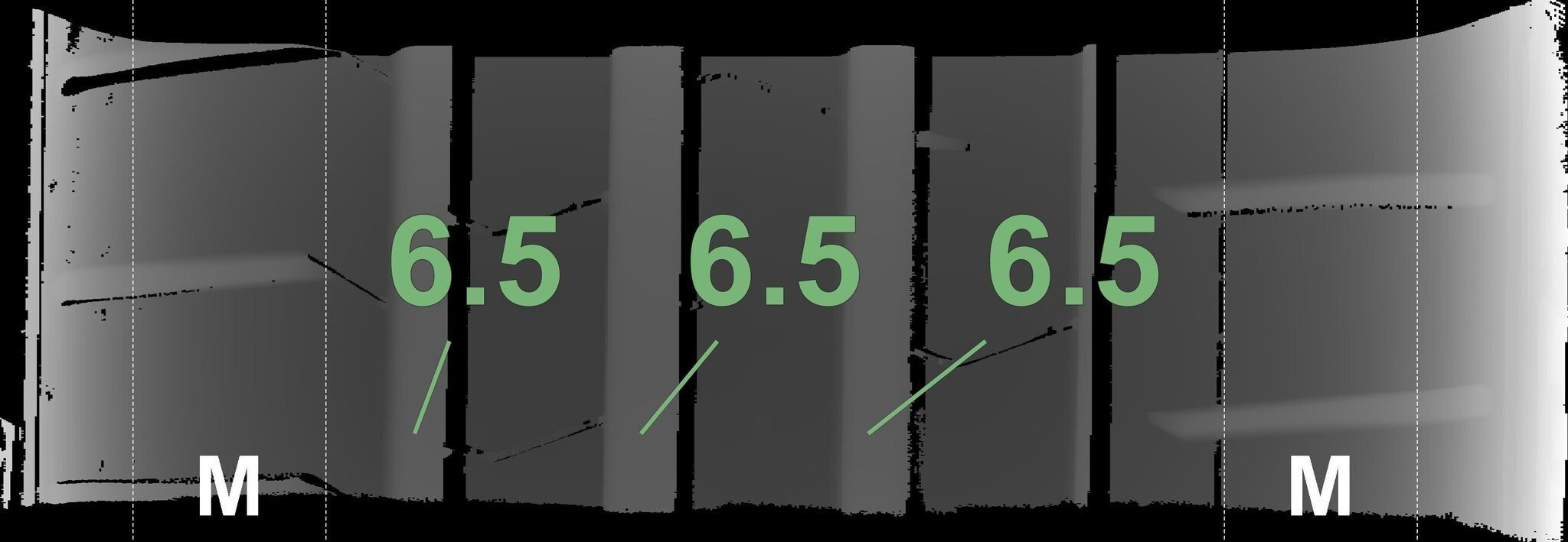 | Zustand | Profiltiefe | DOT | Vorderachse Rechts | Neu | 6.5 mm | 0825 |