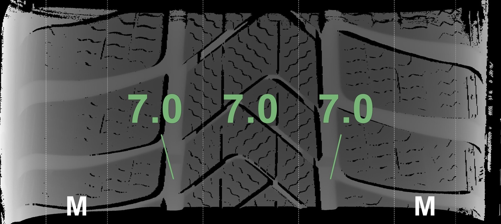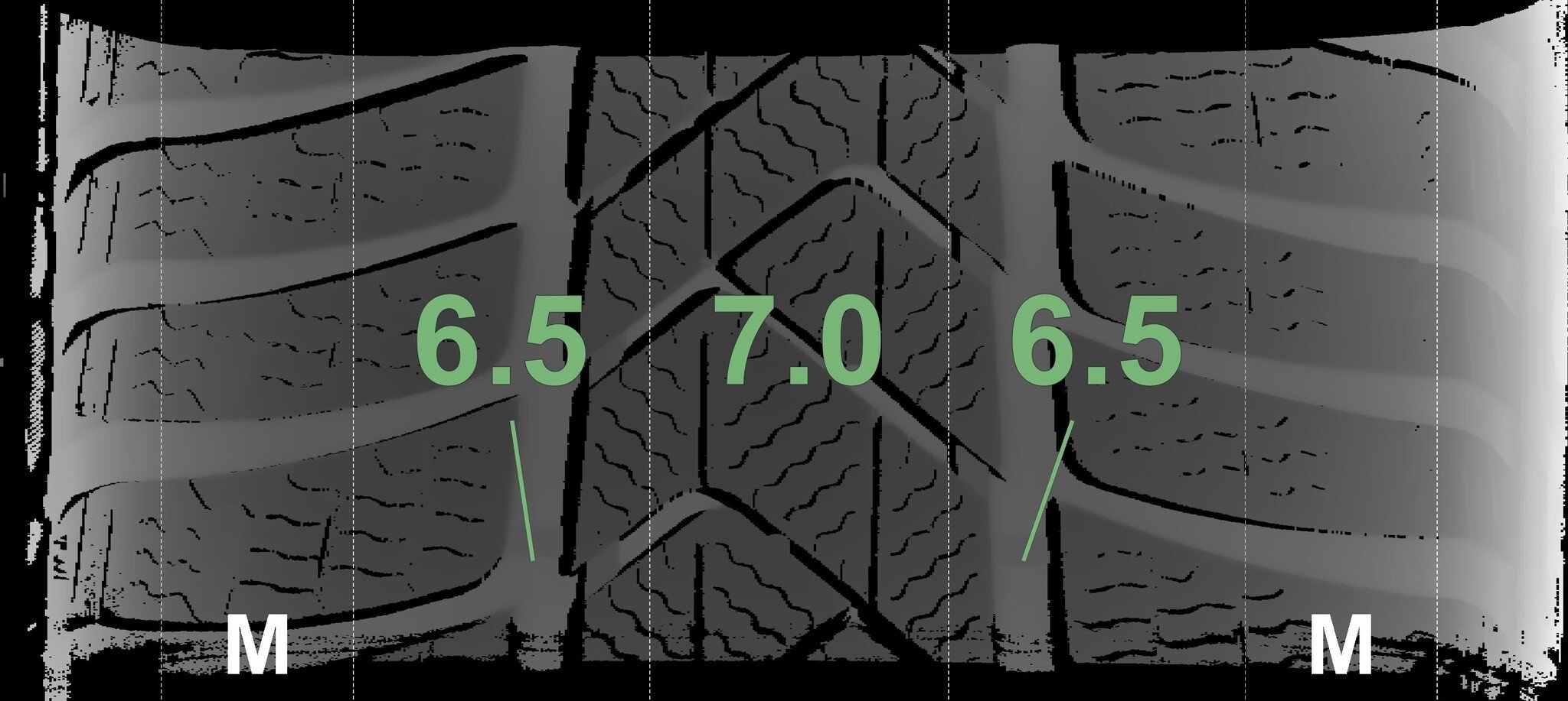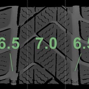 Die gemessenen Profiltiefen und die Details der Felgen sind oben dargestellt.