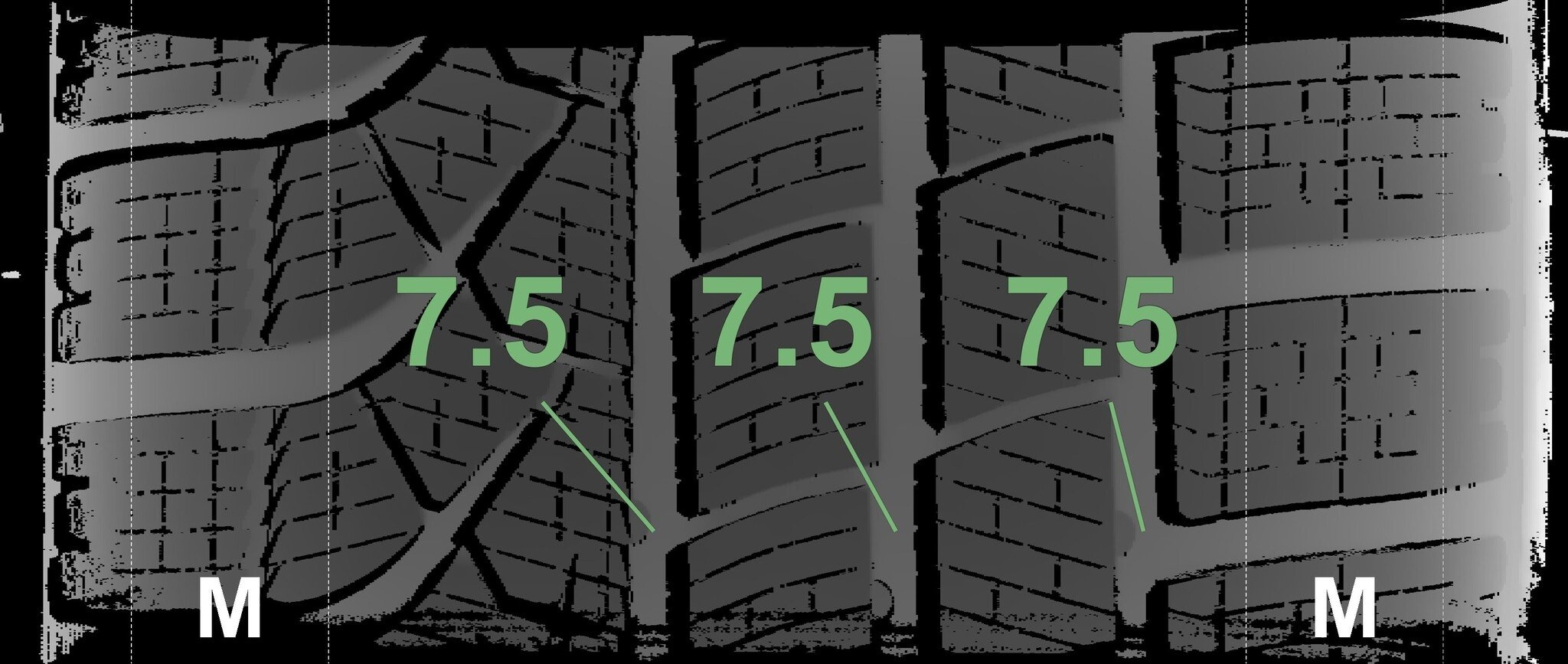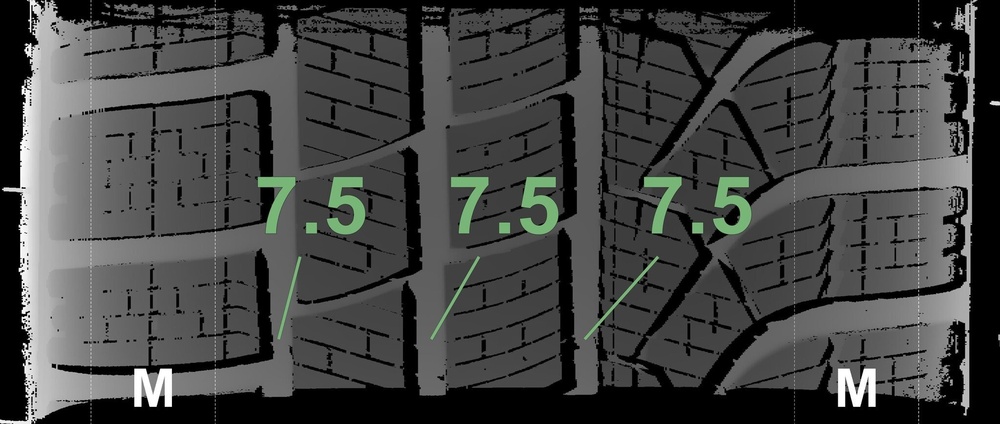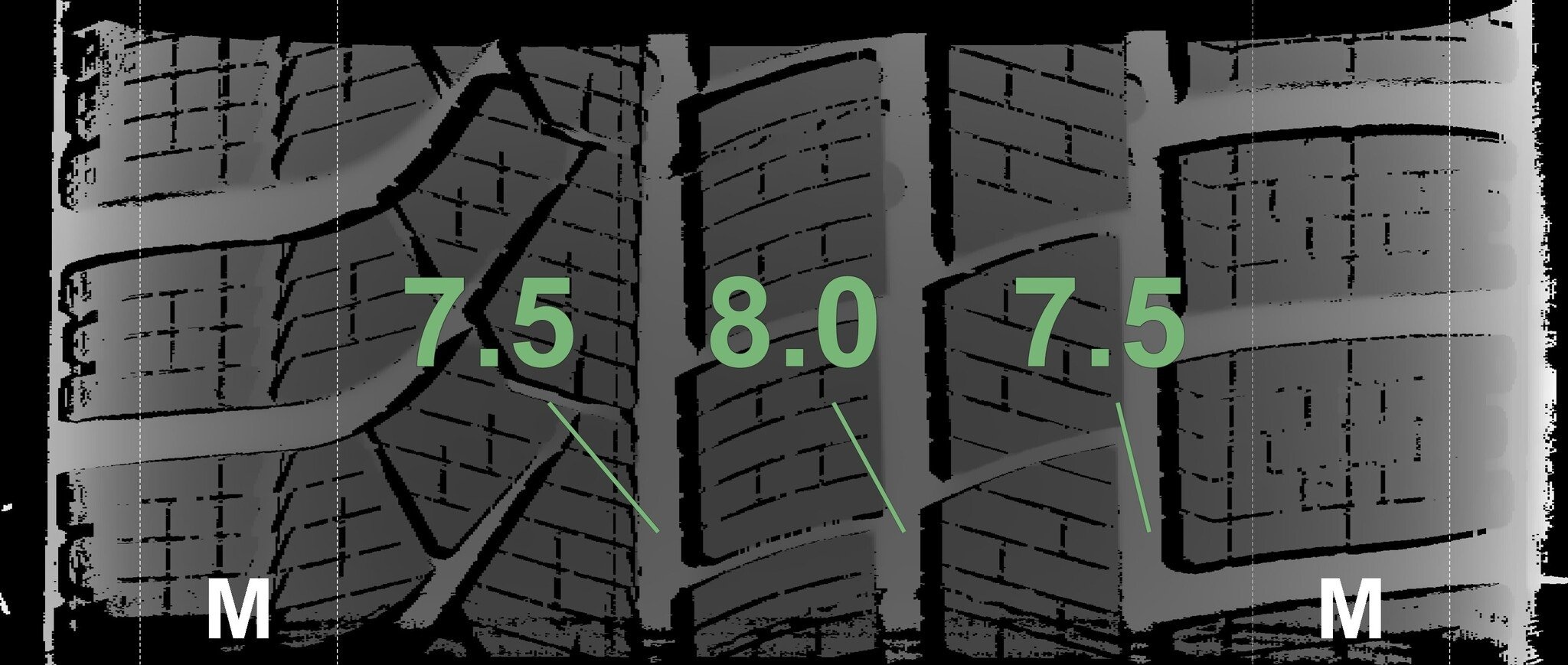 | Zustand | Profiltiefe | DOT | Vorderachse Links | Neu | 7.5 mm | 3525 |