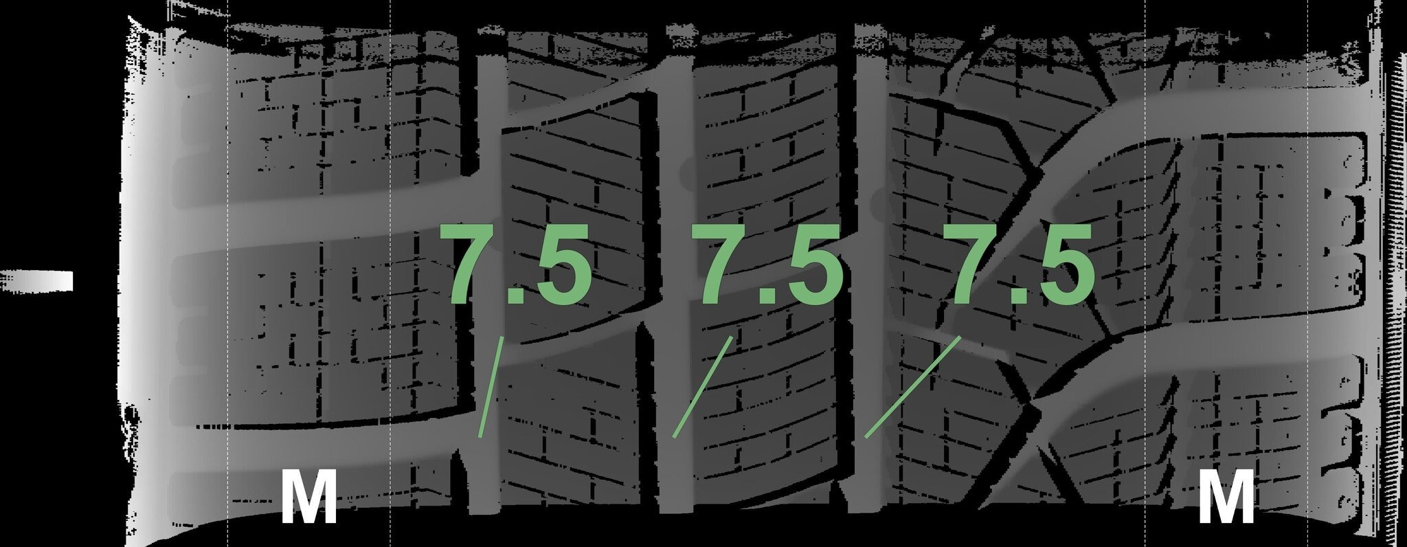 | Zustand | Profiltiefe | DOT | Hinterachse Links | Neu | 7.5 mm | 2425 |