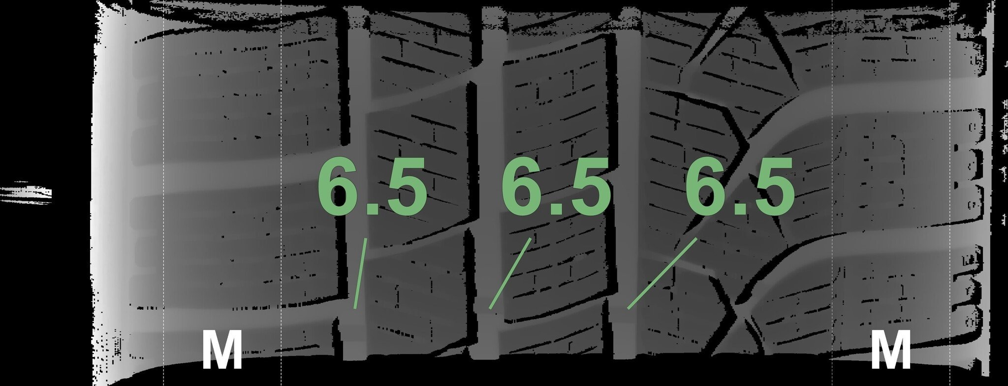 | Zustand | Profiltiefe | DOT | Vorderachse Links | Gebraucht | 6.5 mm | 3524 |