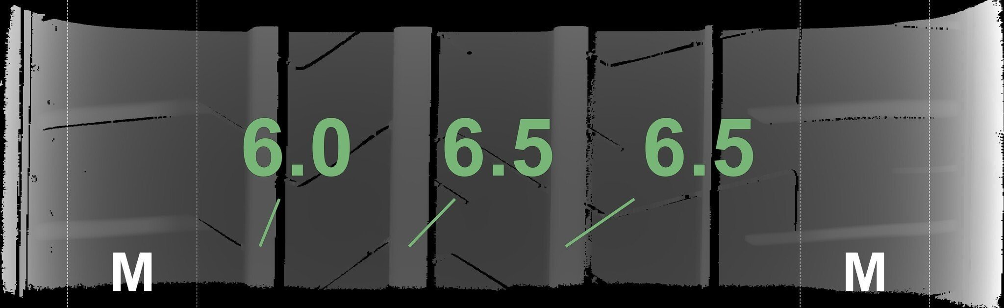 Die gemessenen Profiltiefen und die Details der Felgen sind oben dargestellt.