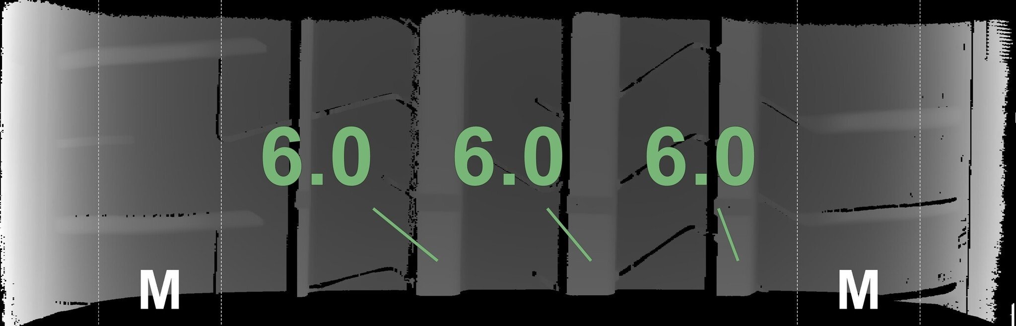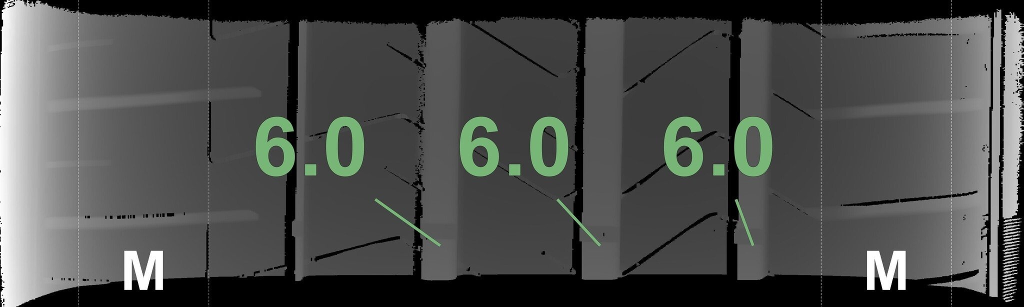 | Zustand | Profiltiefe | DOT | Vorderachse Links | Demo-Noppen noch sichtbar | 6.0 mm | 3825 |