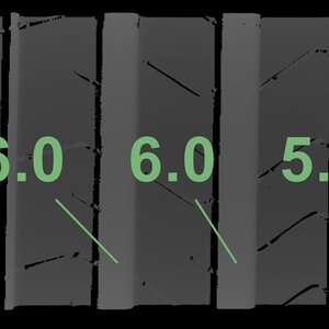 | Zustand | Profiltiefe | DOT | Vorderachse Rechts | Demo-Noppen noch sichtbar | 5.8 mm | 0725 |