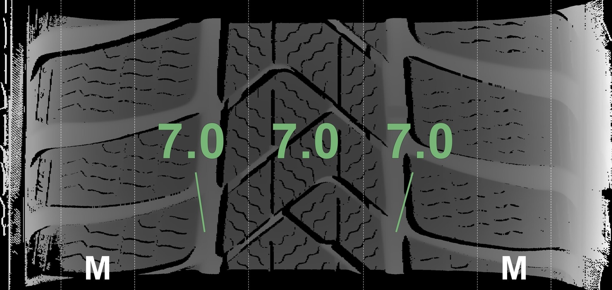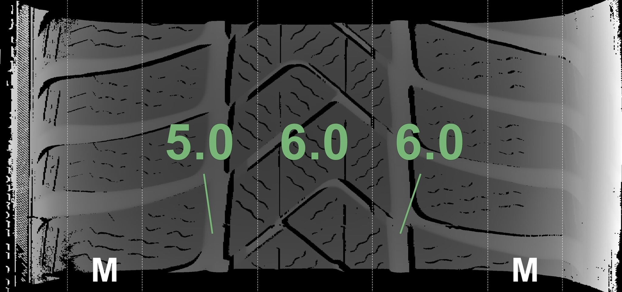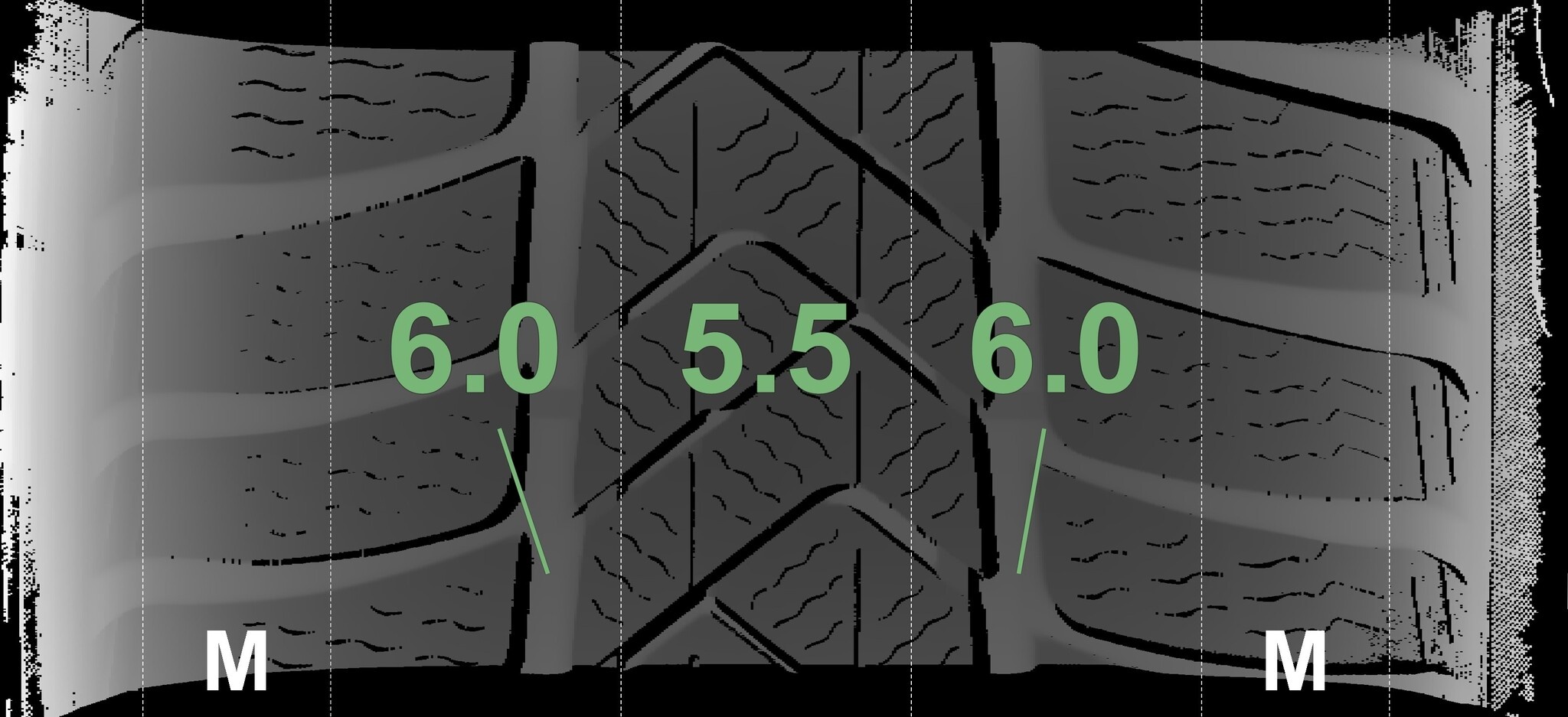 Die gemessenen Profiltiefen und Details zu den Felgen sind oben abgebildet.