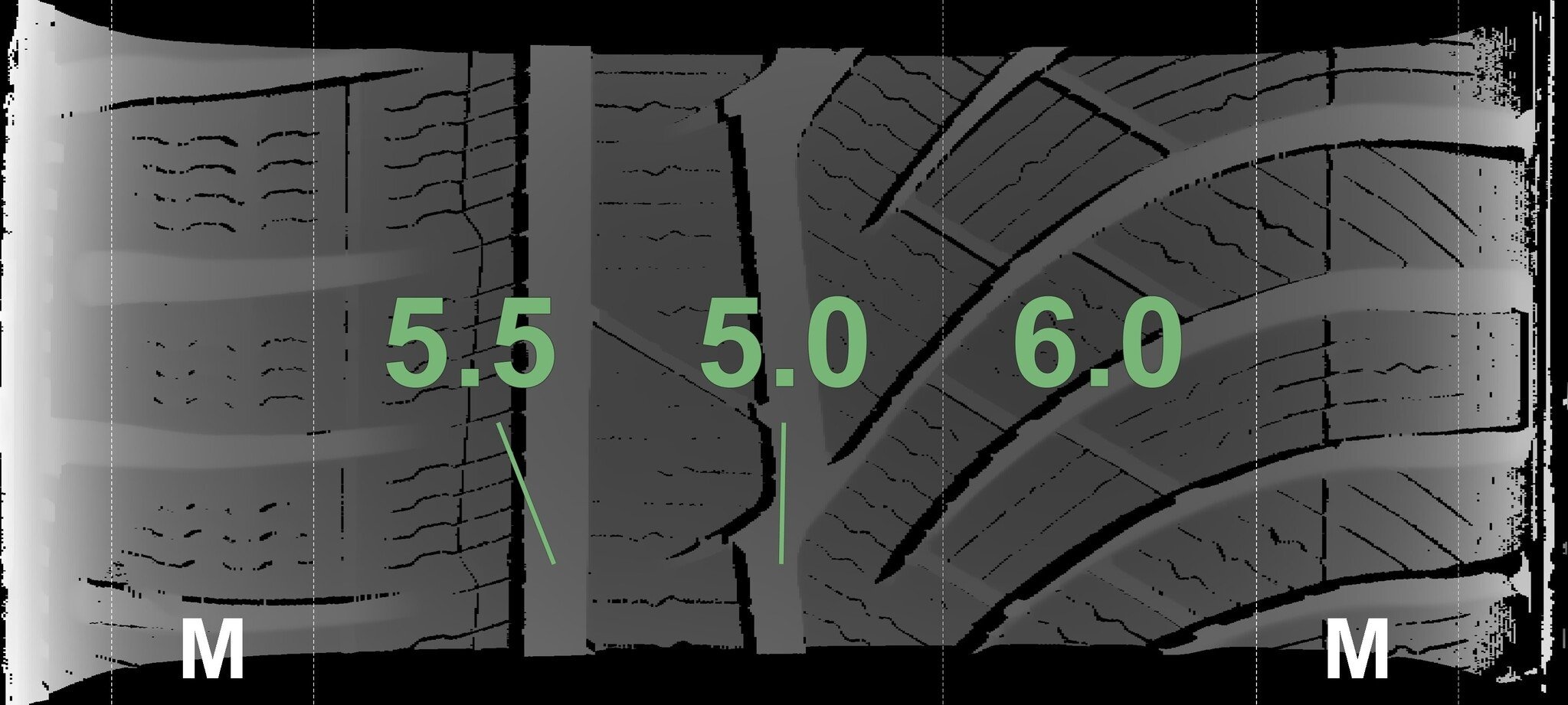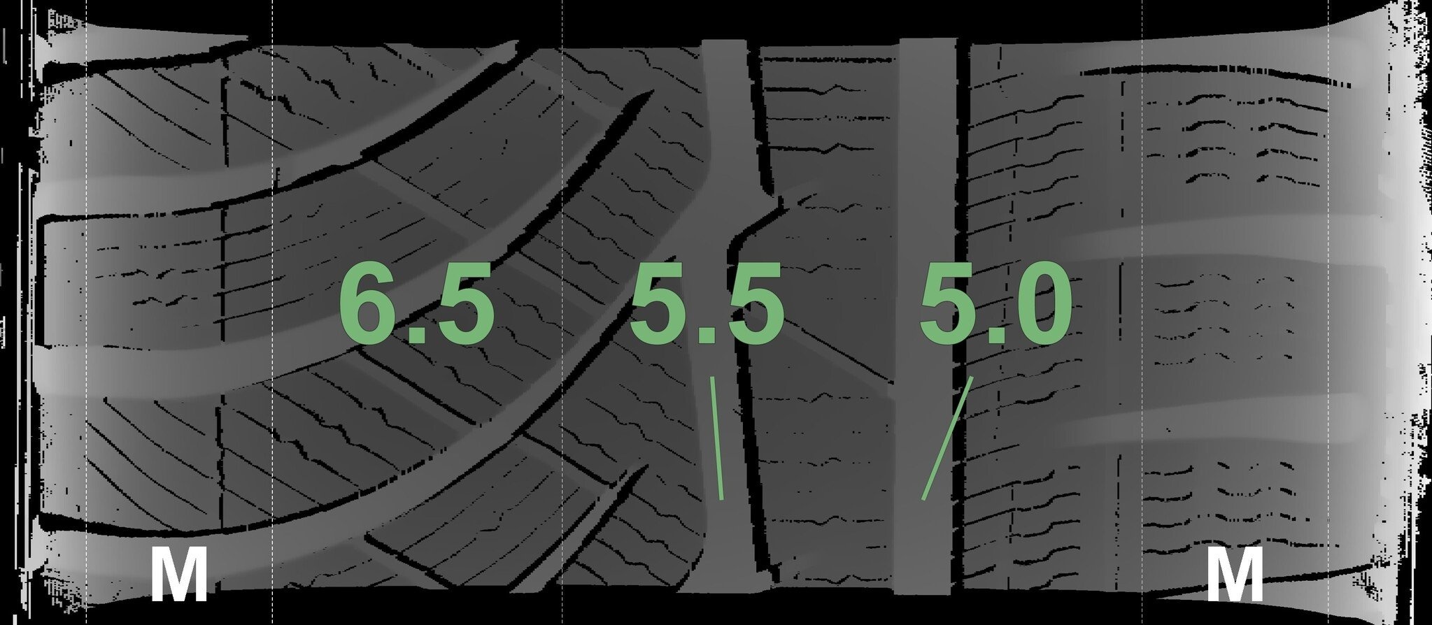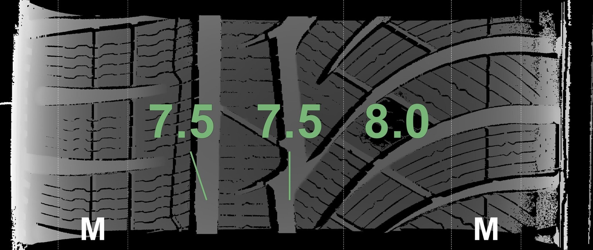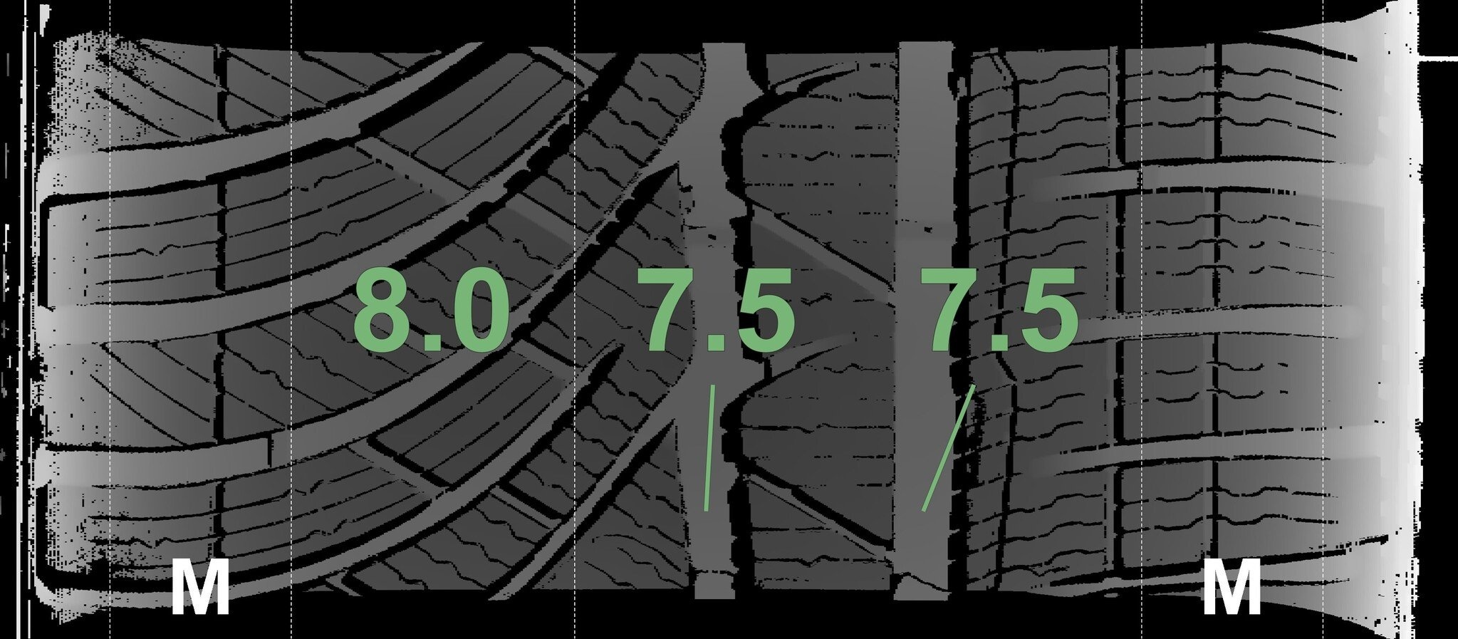 Die gemessenen Profiltiefen und Details zu den Felgen sind oben abgebildet.