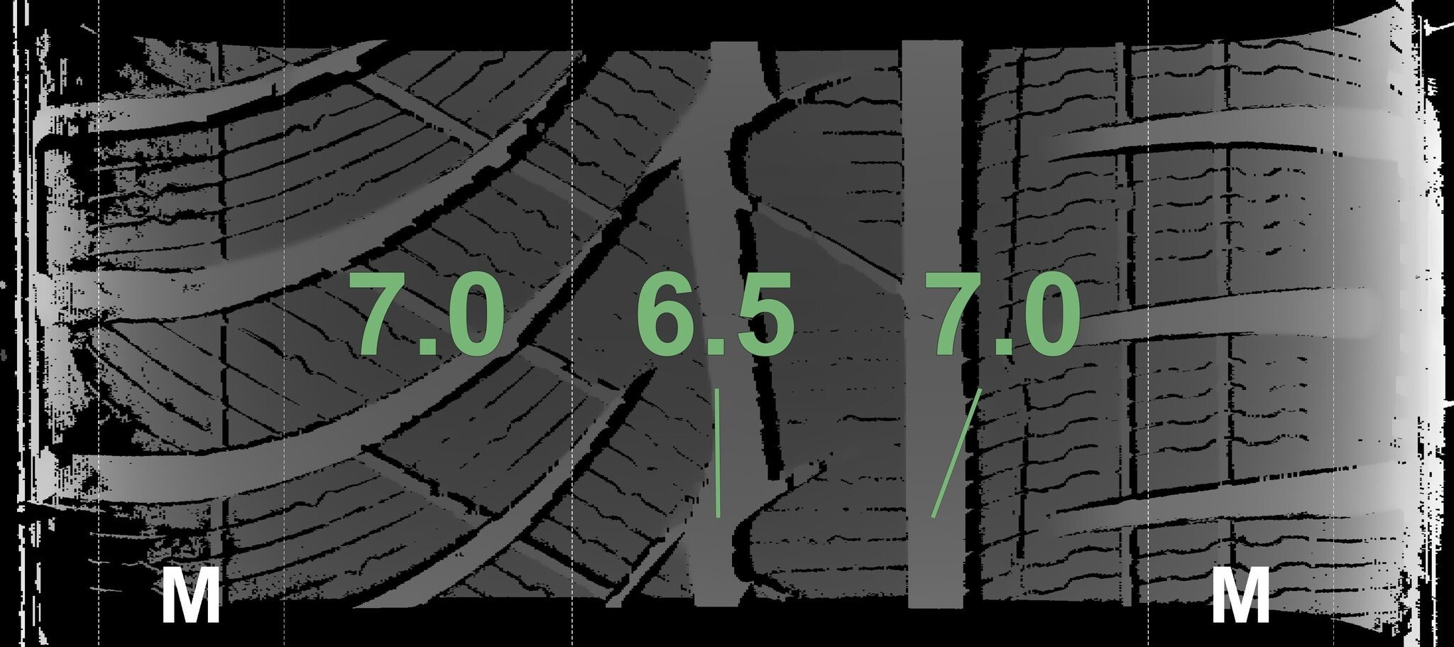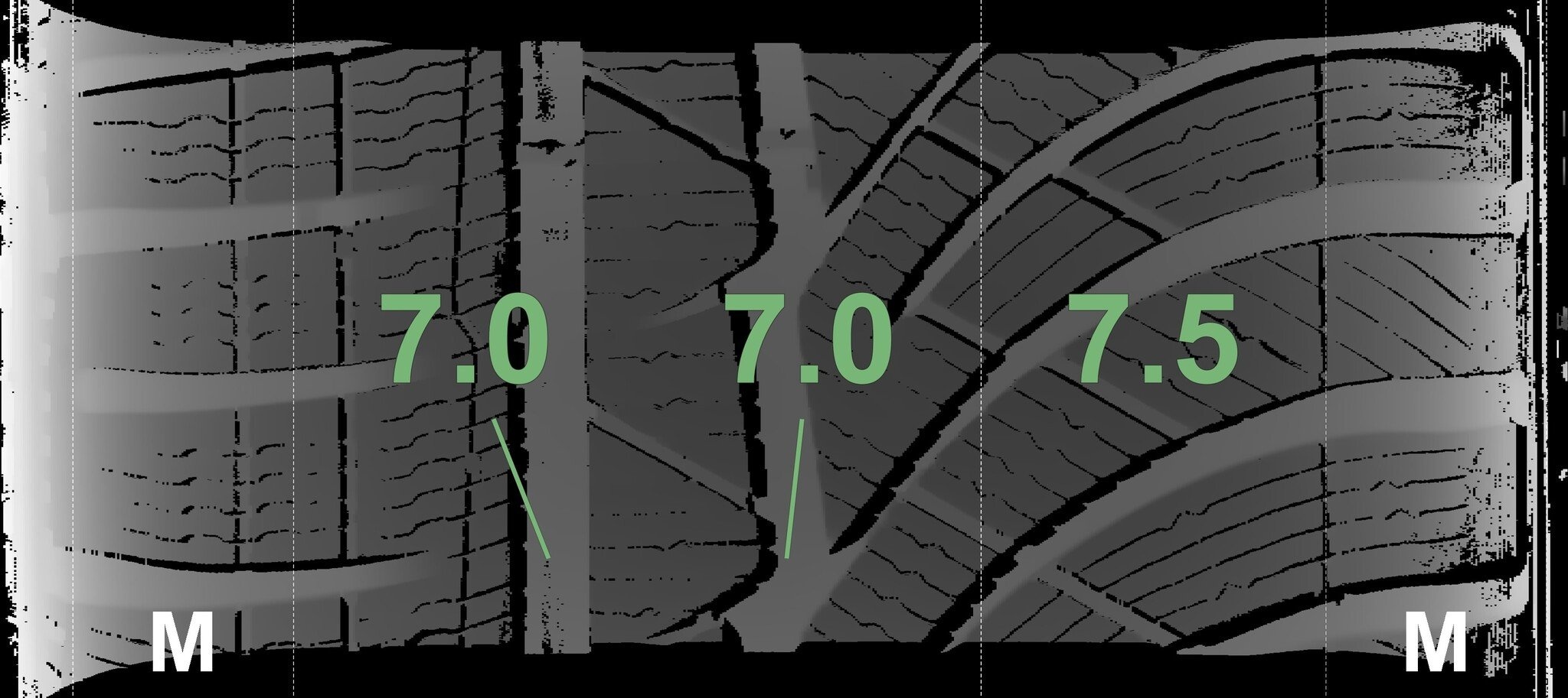 Die gemessenen Profiltiefen und Details zu den Felgen sind oben abgebildet.