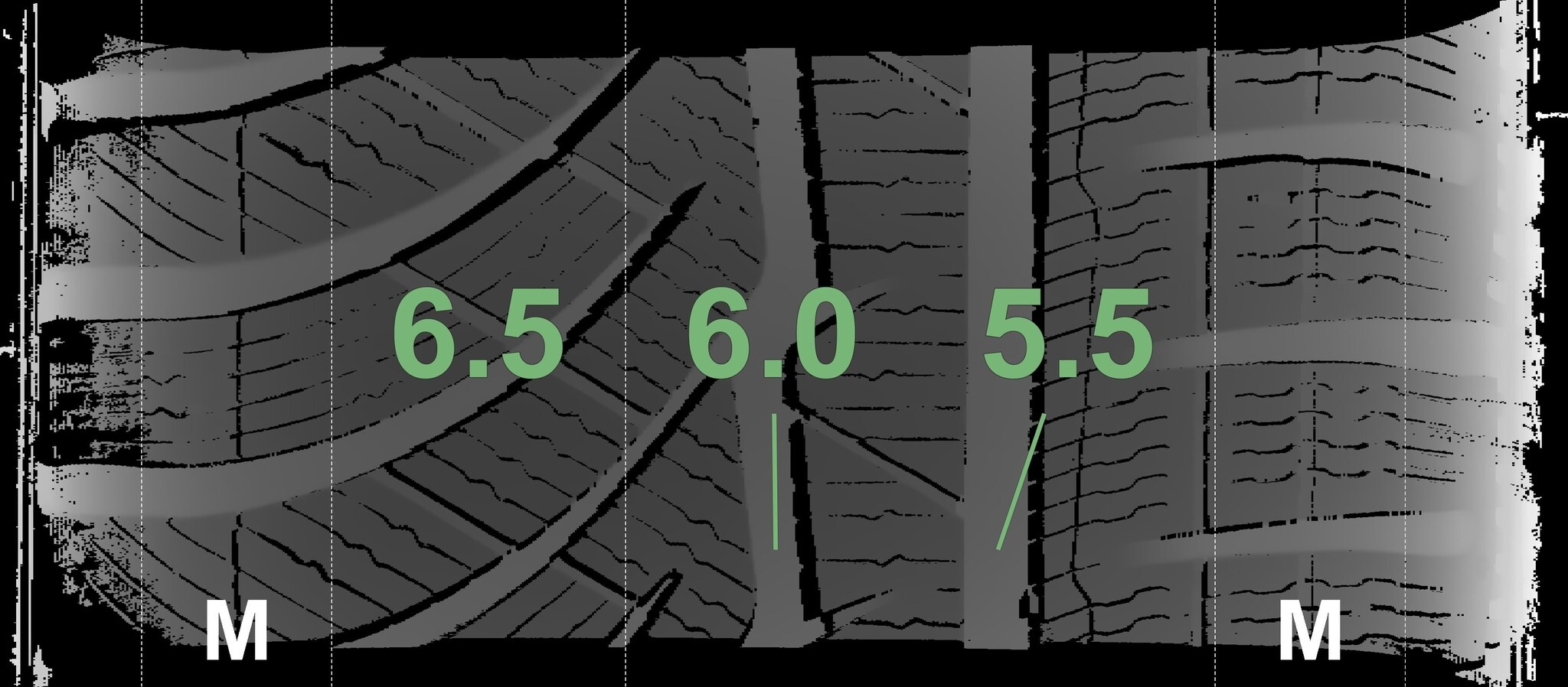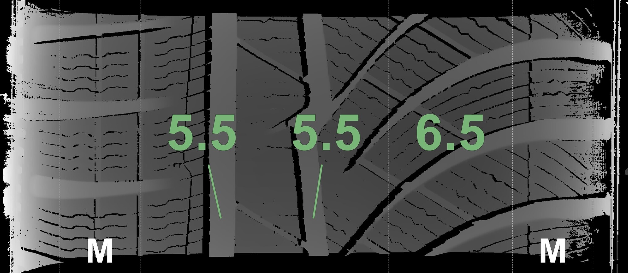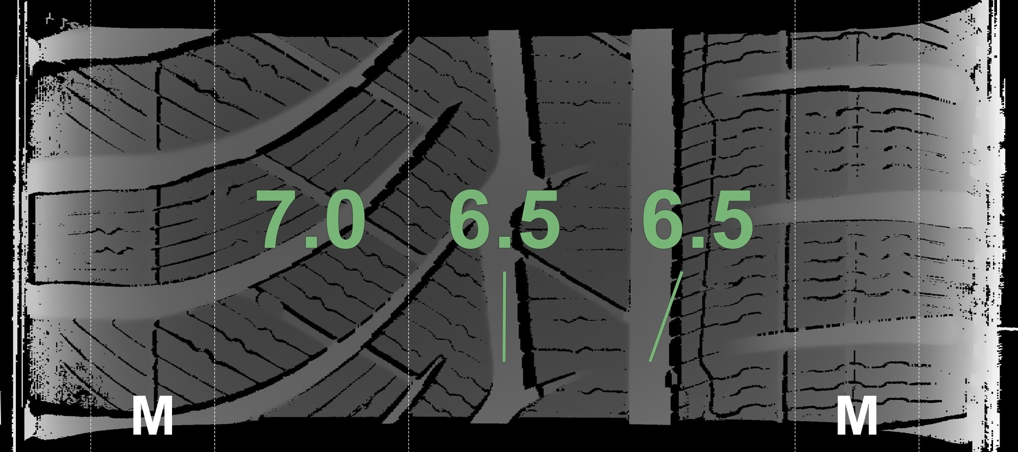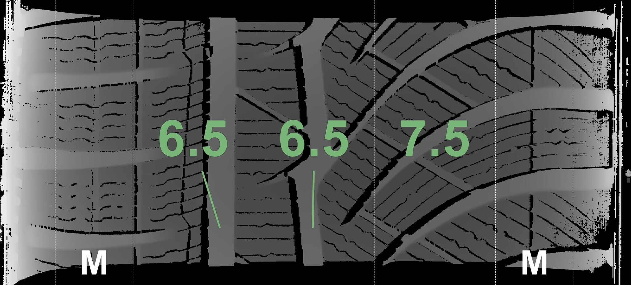 Die gemessenen Profiltiefen und Details zu den Felgen sind oben abgebildet.
