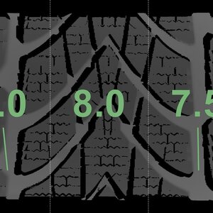 | Zustand | Profiltiefe | DOT | Vorderachse Links | Neu | 7,5 mm | 4916 |