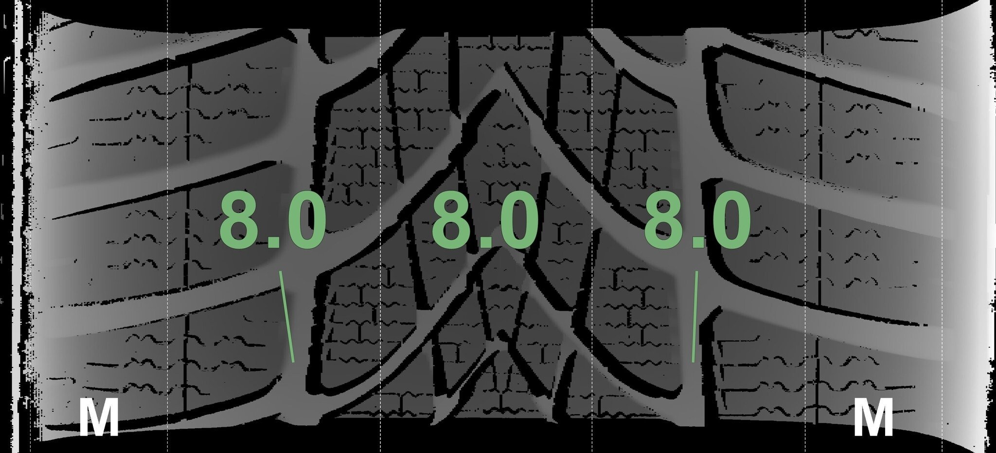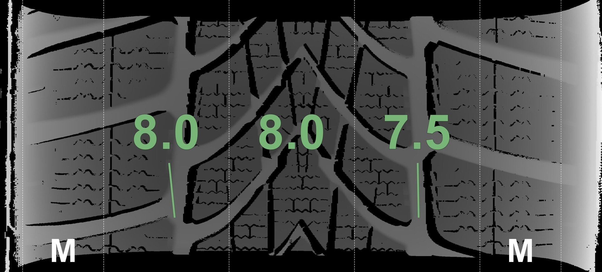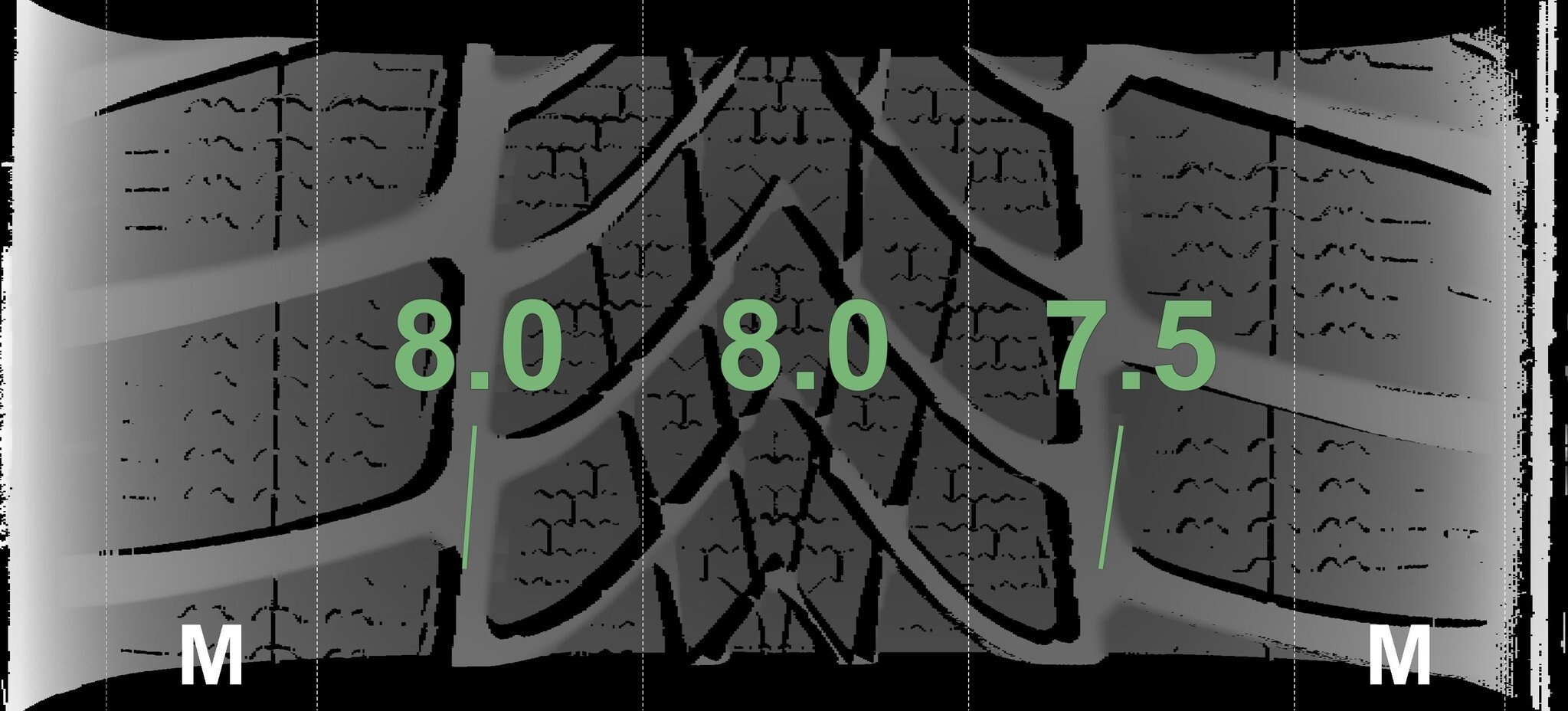 Zustand | Profiltiefe | DOT | Vorderachse Rechts | Neu | 8,0 mm | 4916 |
