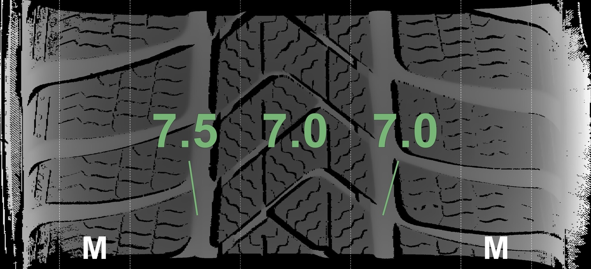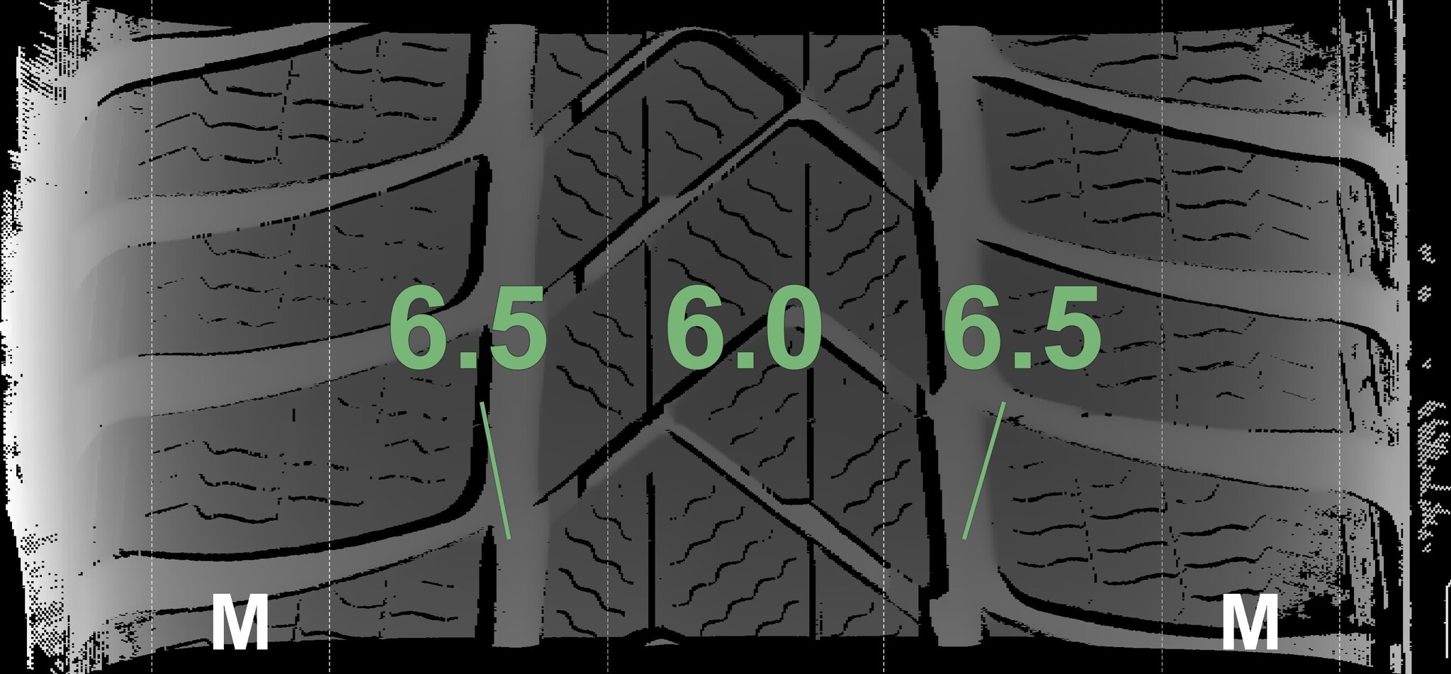 Die gemessenen Profiltiefen und Details zu den Felgen sind oben abgebildet.