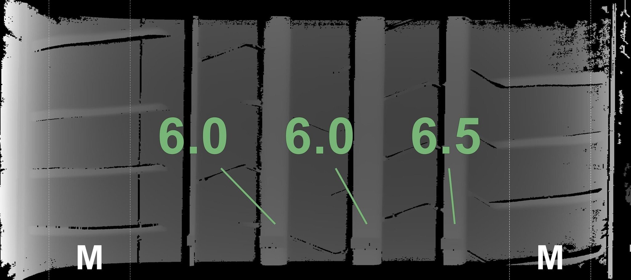 Die gemessenen Profiltiefen und Details zu den Felgen sind oben abgebildet.
