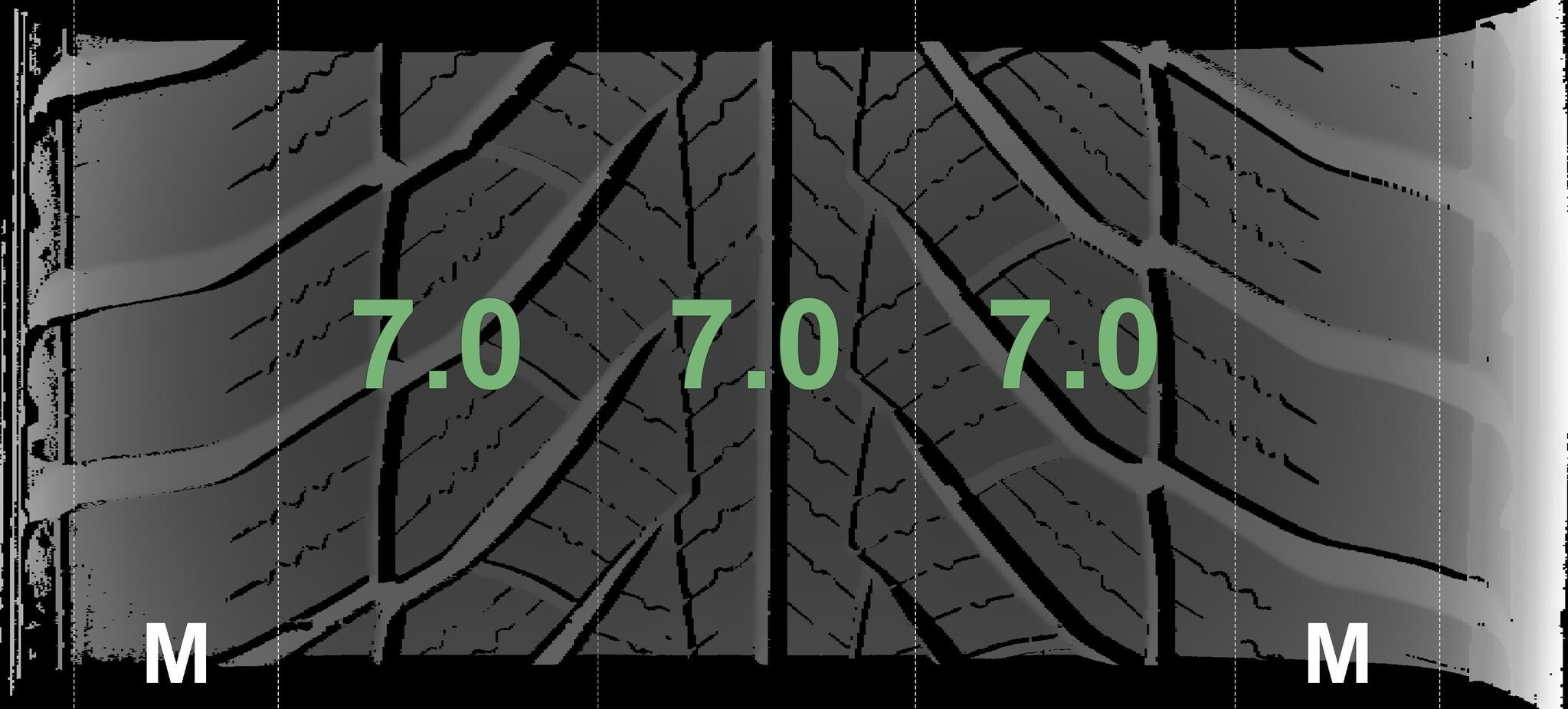 | Zustand | Profiltiefe | DOT | Vorderachse Rechts | Gebraucht | 7,0 mm | 3920 |