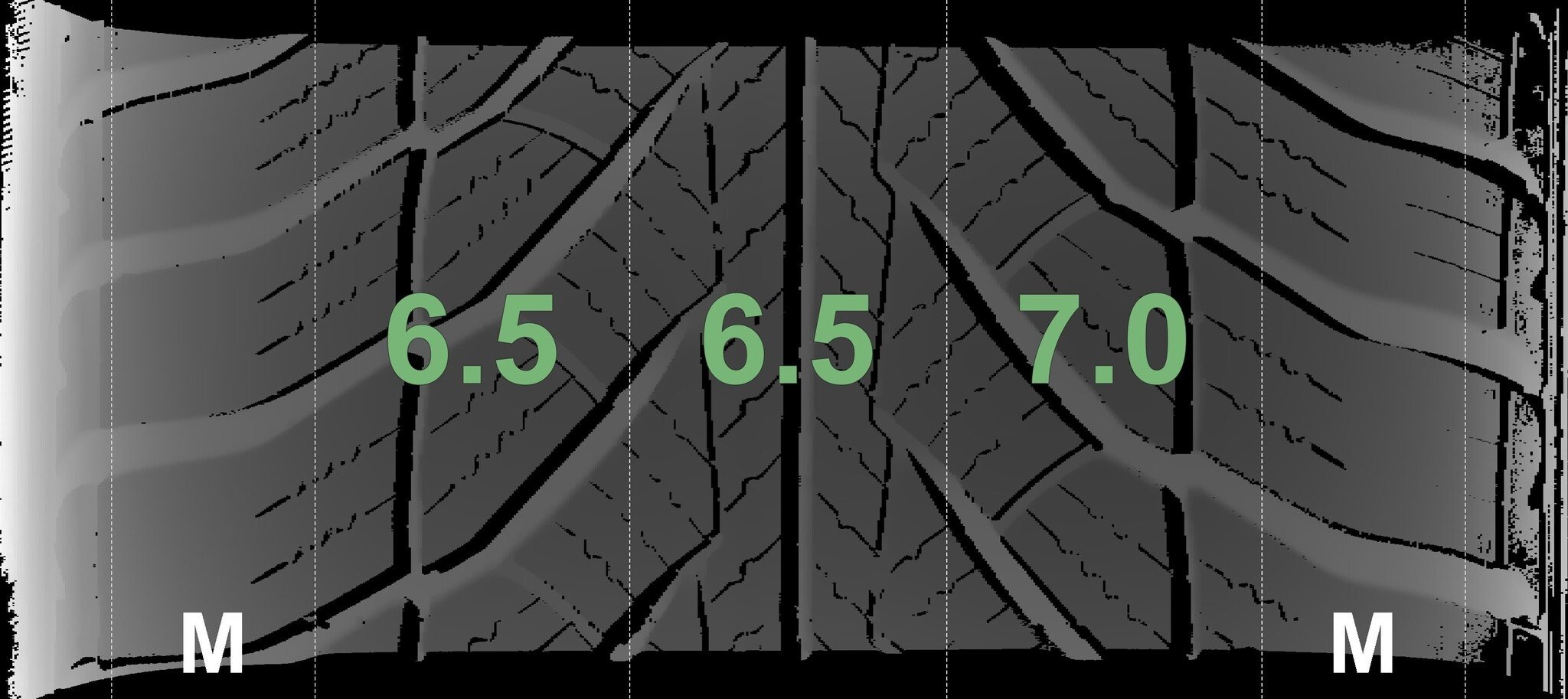 Die gemessenen Profiltiefen und Details zu den Felgen sind oben abgebildet.