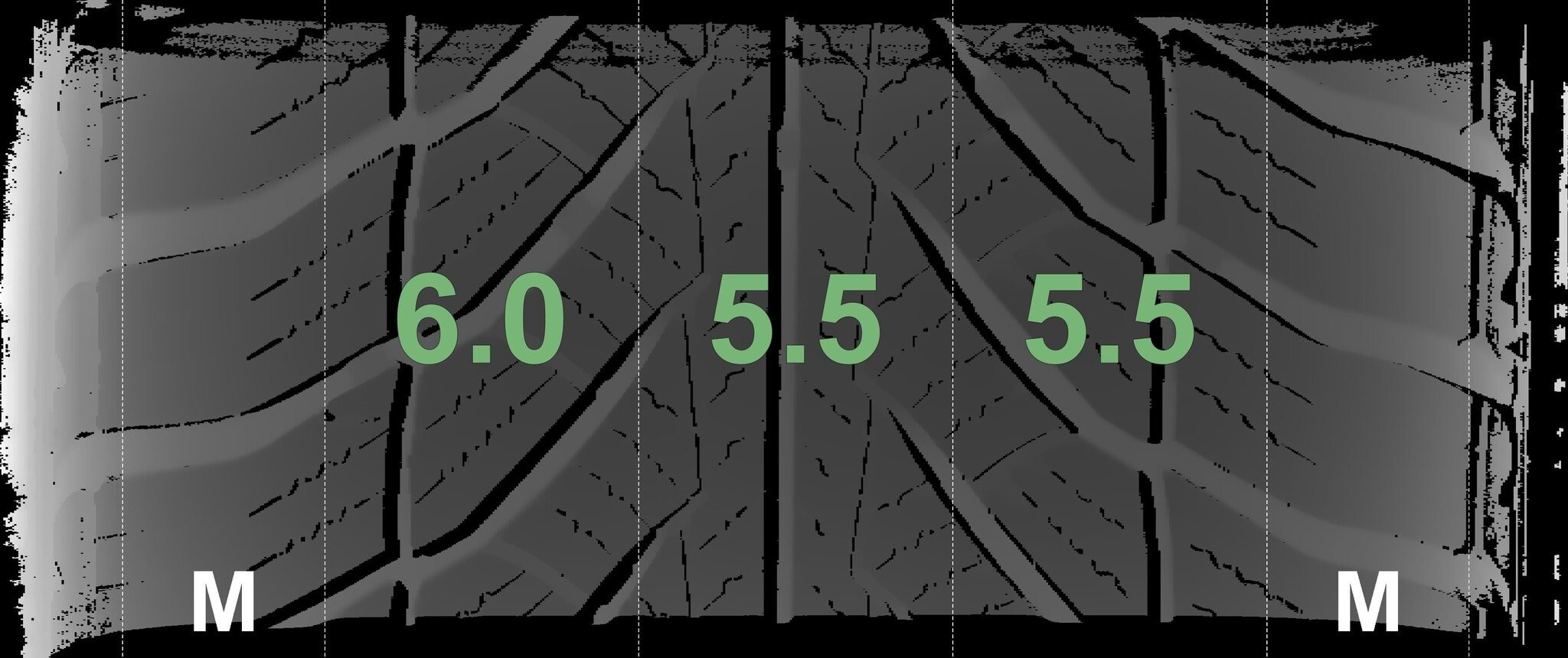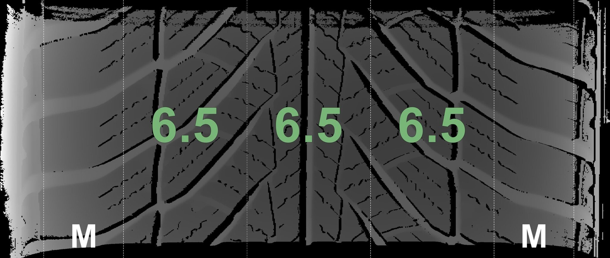 Die gemessenen Profiltiefen und die Details der Felgen sind oben aufgeführt.