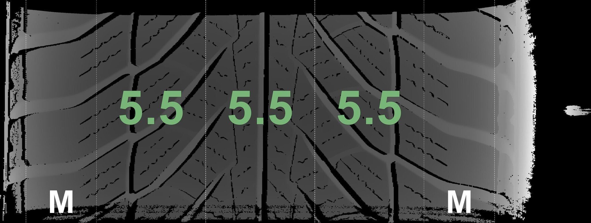 | Zustand | Profiltiefe | DOT | Vorderachse Rechts | Gebraucht | 5.5 mm | 4317 |