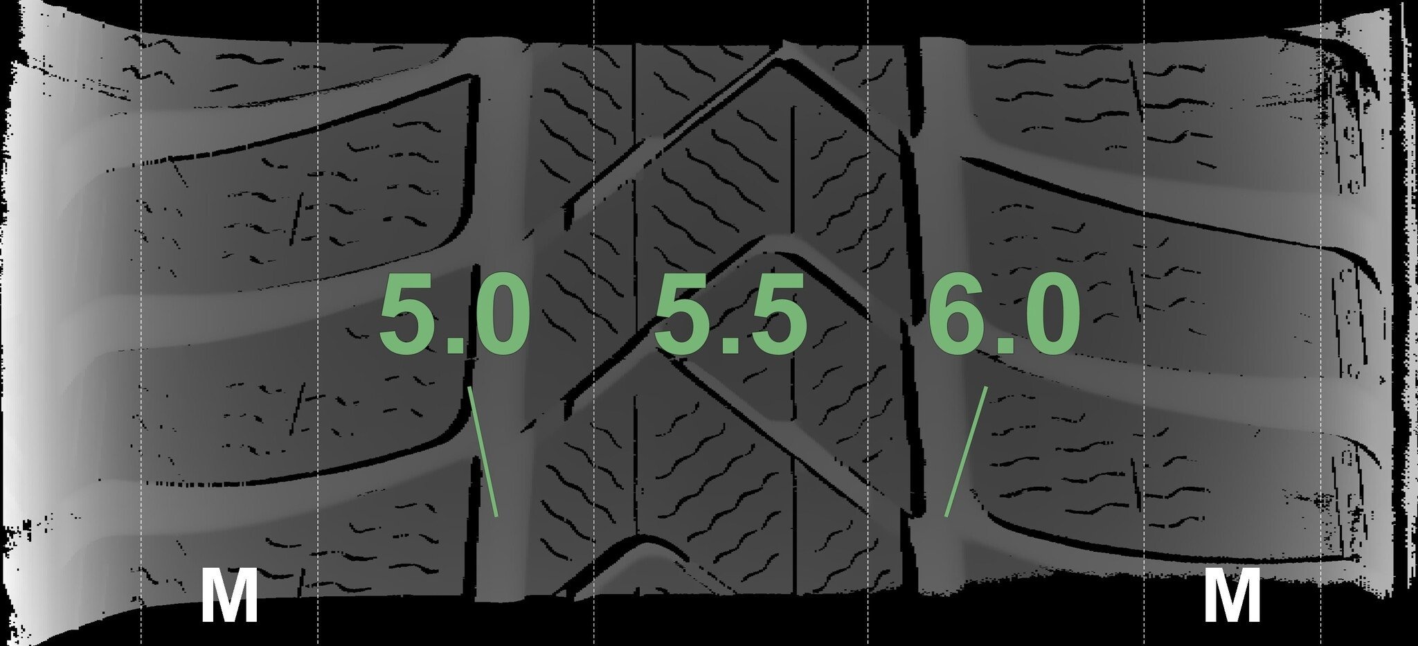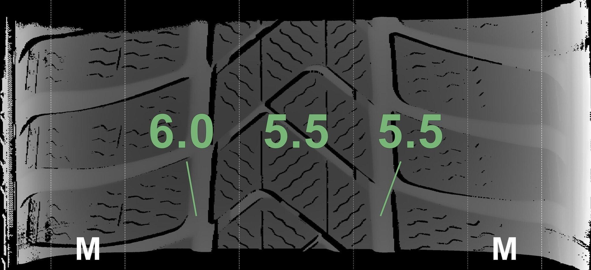 Die gemessenen Profiltiefen und Details zu den Felgen sind oben abgebildet.