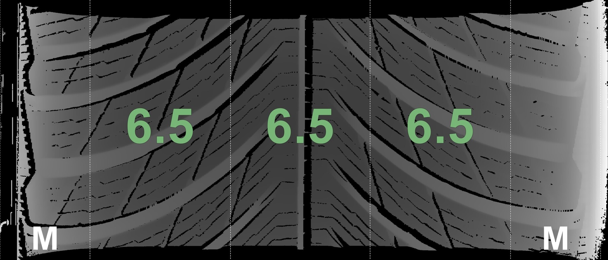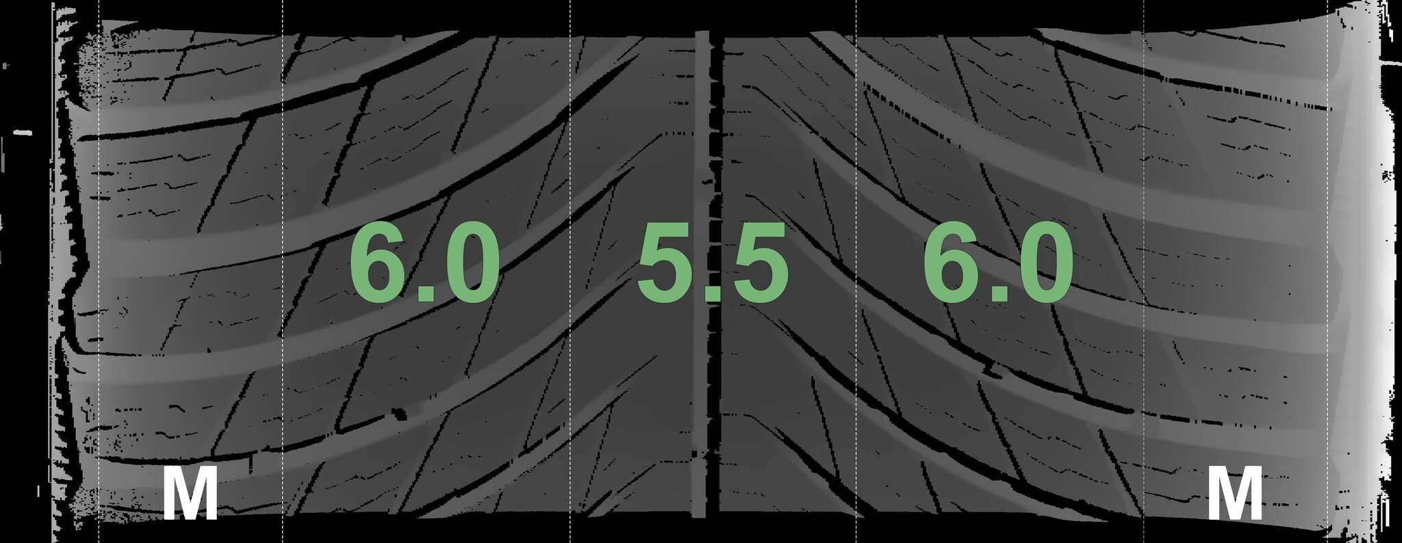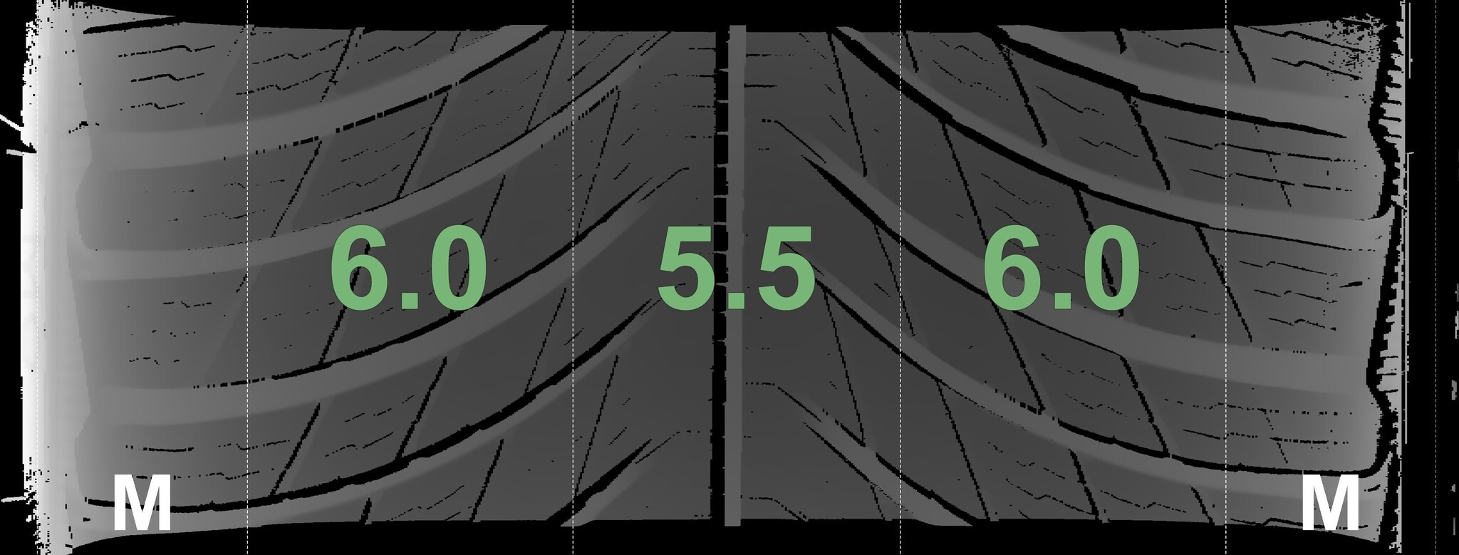 Die gemessenen Profiltiefen und Details zu den Felgen sind oben abgebildet.