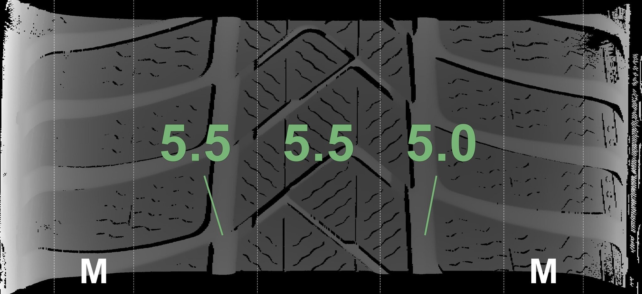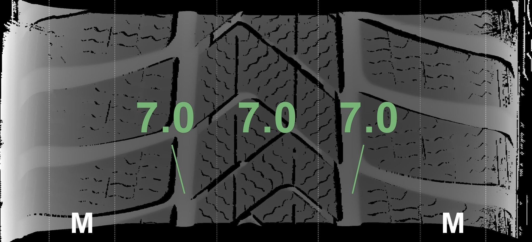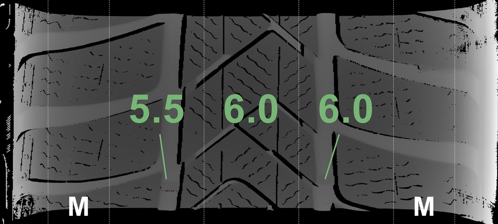 Die gemessenen Profiltiefen und Details zu den Felgen sind oben abgebildet.