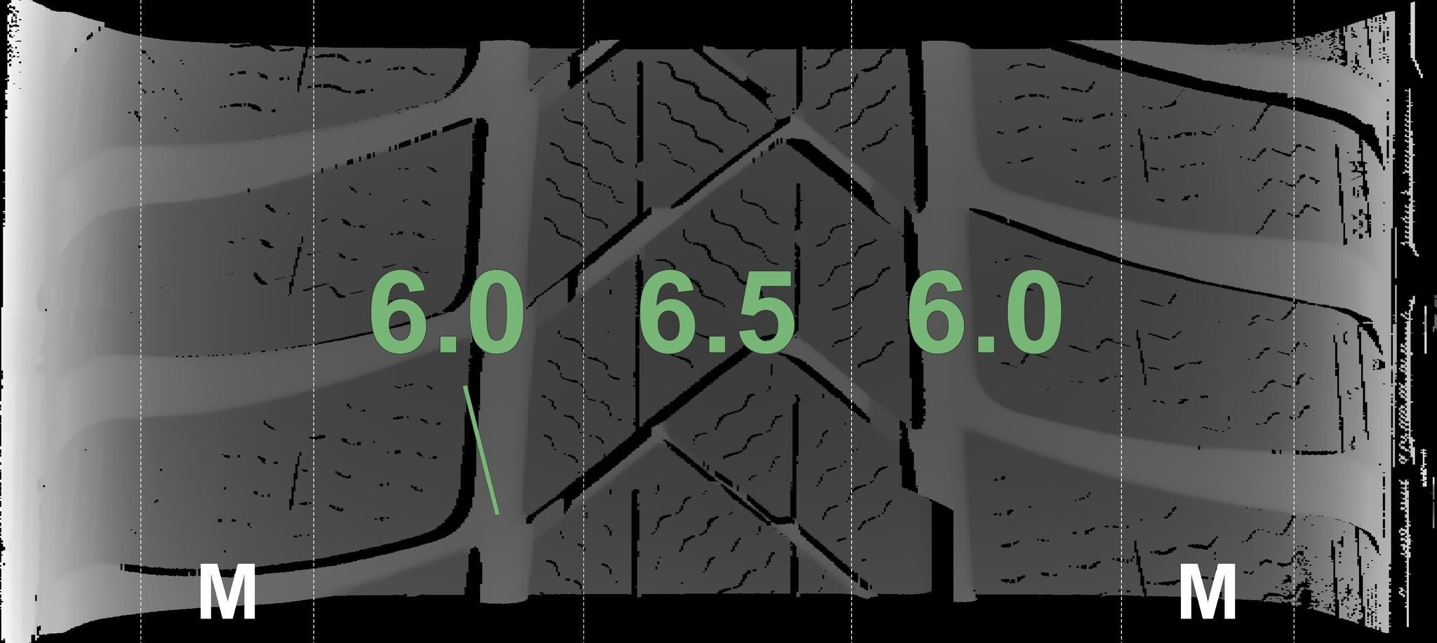Die gemessenen Profiltiefen und Details zu den Felgen sind oben abgebildet.