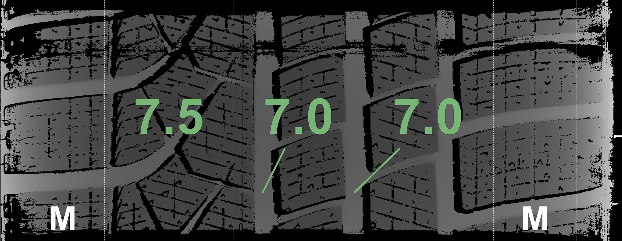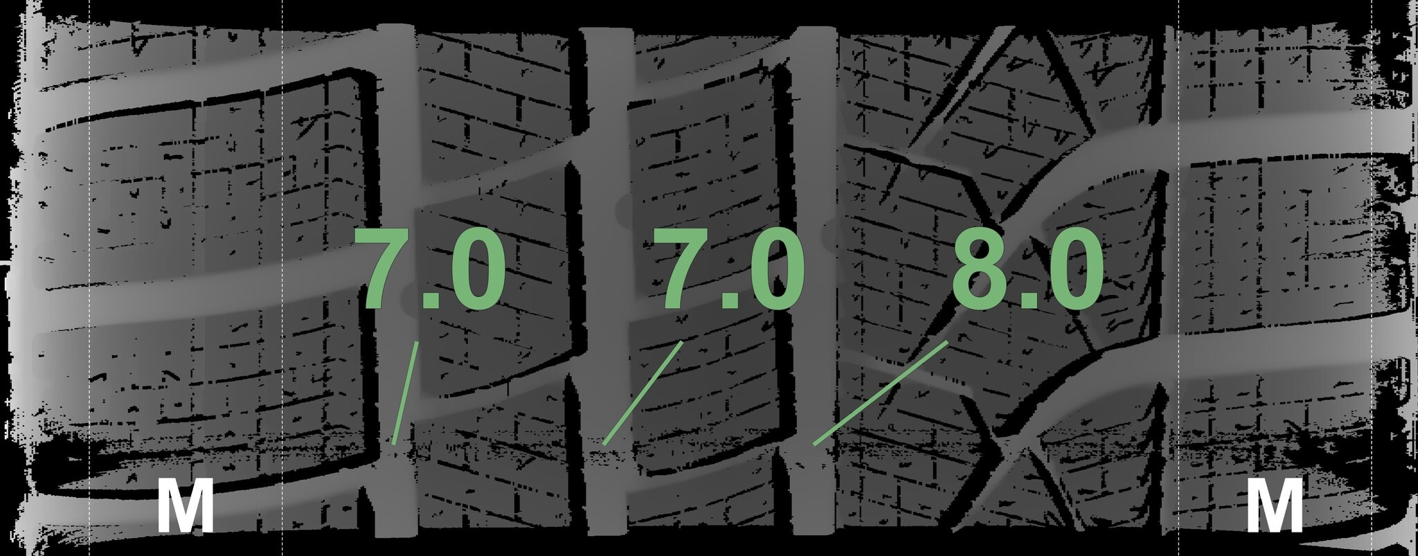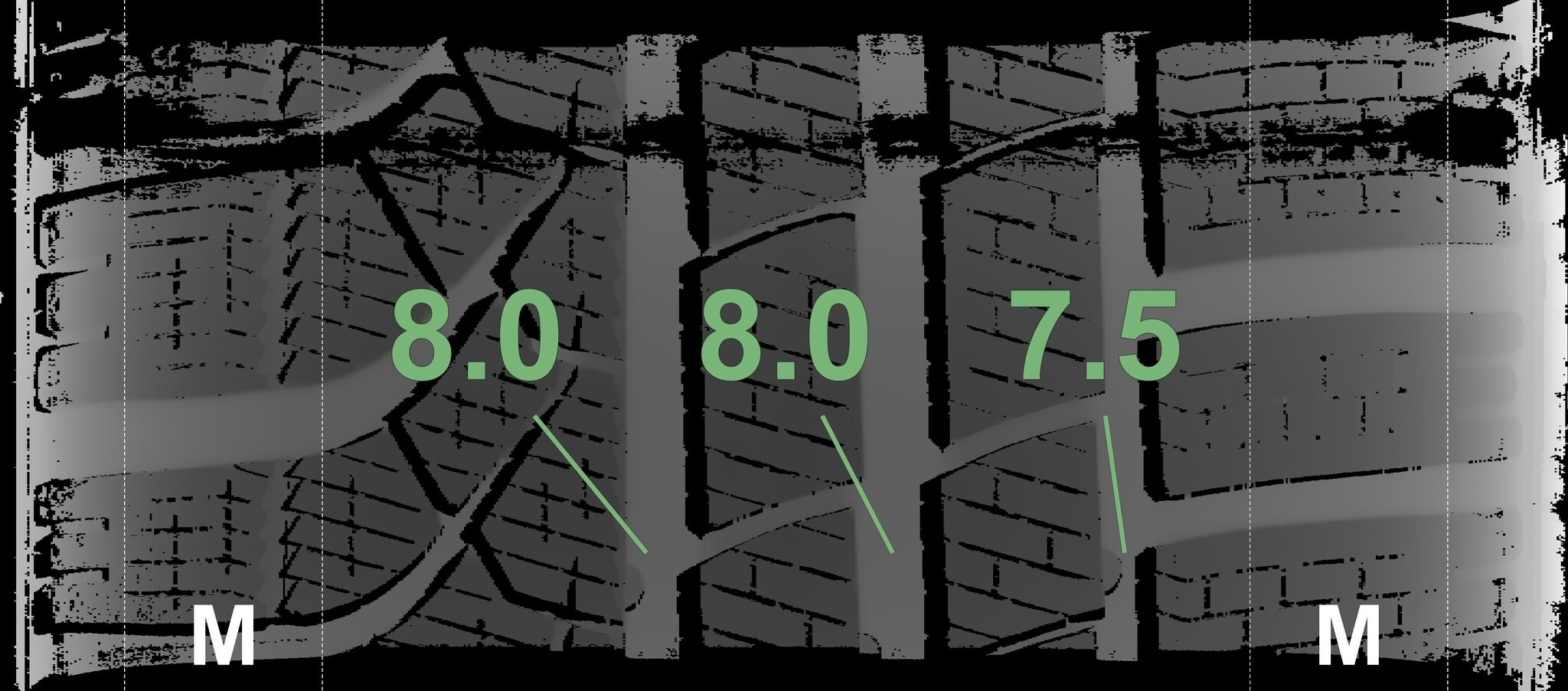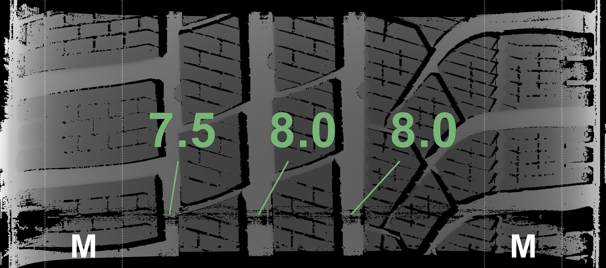 Die gemessenen Profiltiefen und Details zu den Felgen sind oben abgebildet.