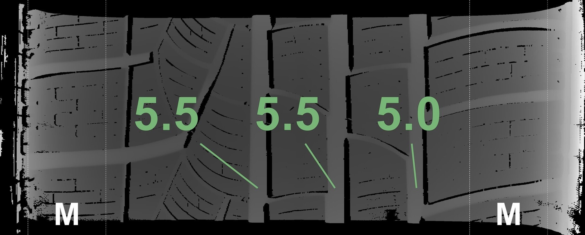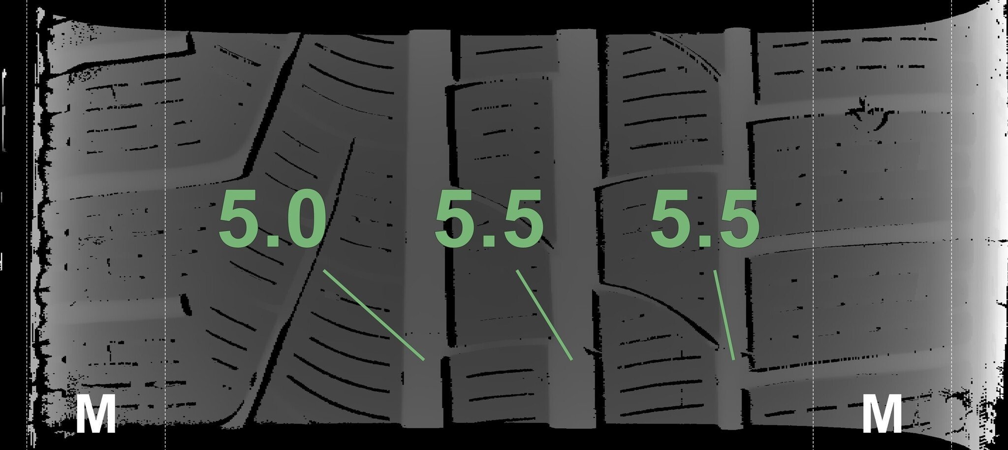 Die gemessenen Profiltiefen und Details zu den Felgen sind oben abgebildet.