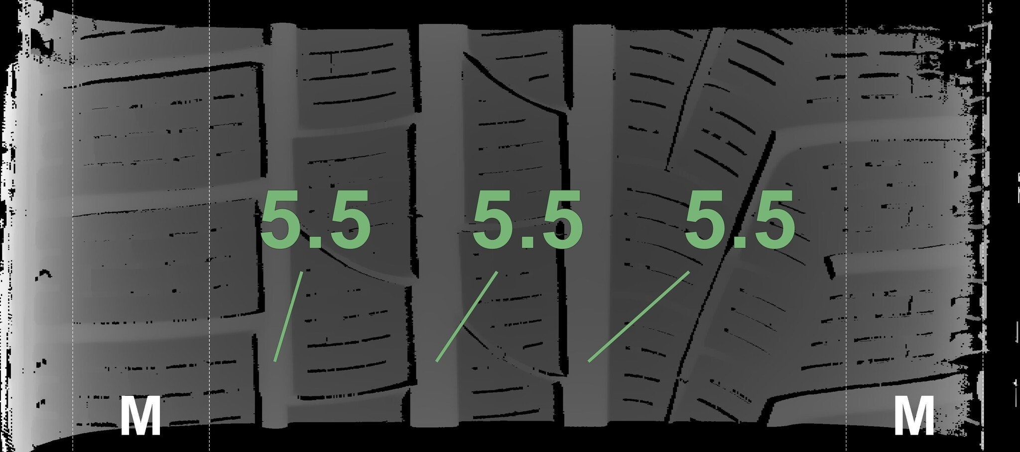 | Zustand | Profiltiefe | DOT | Vorderachse Links | Gebraucht | 5,5 mm | 4319 |
