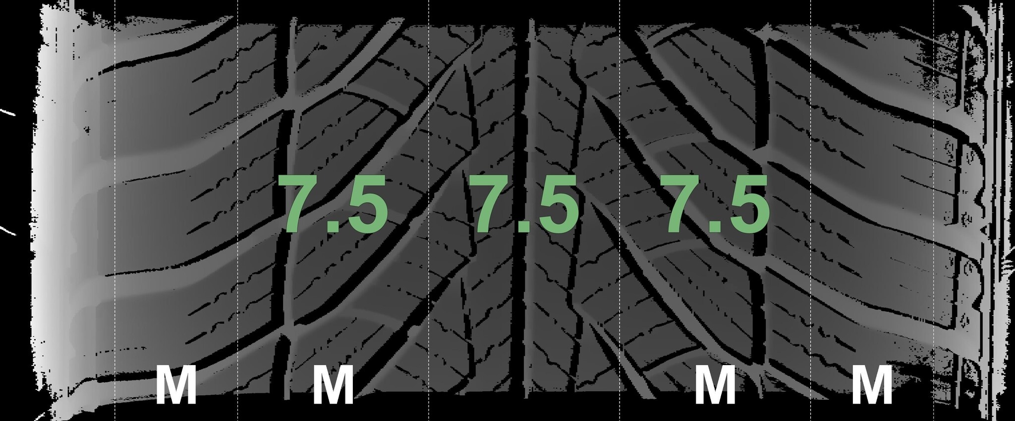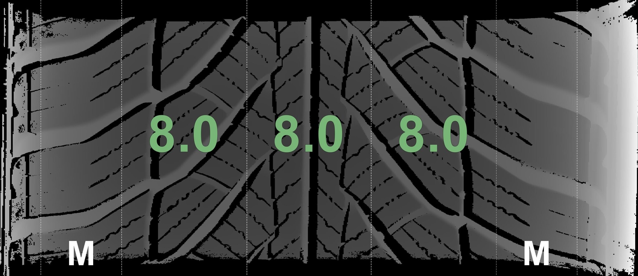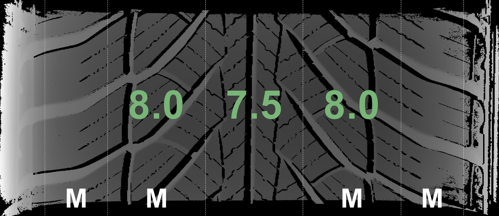 Die gemessenen Profiltiefen und Details zu den Felgen sind oben abgebildet.