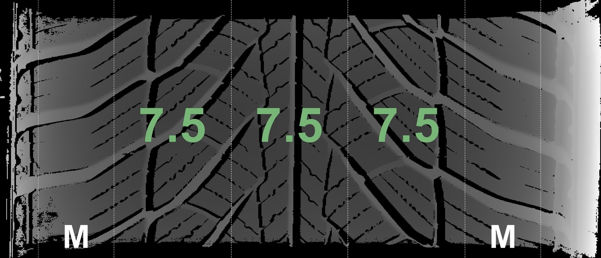Zustand | Profiltiefe | DOT | Vorderachse Links | Gebraucht | 7,5 mm | 3720 |