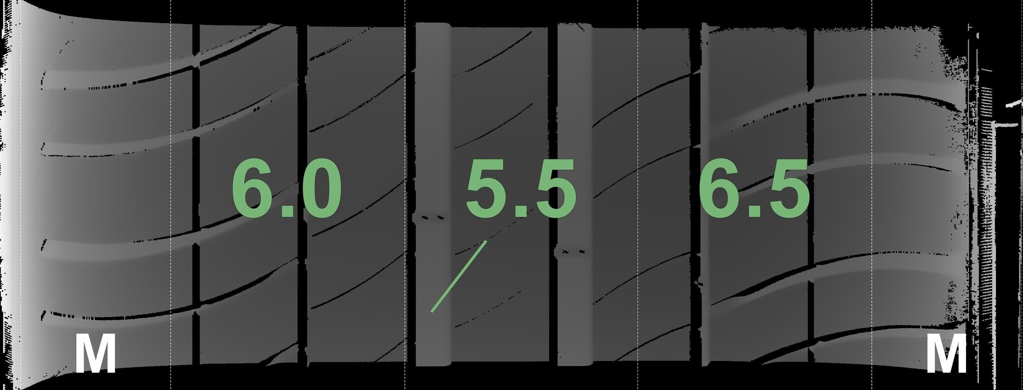 Die gemessenen Profiltiefen und Details zu den Felgen sind oben abgebildet.