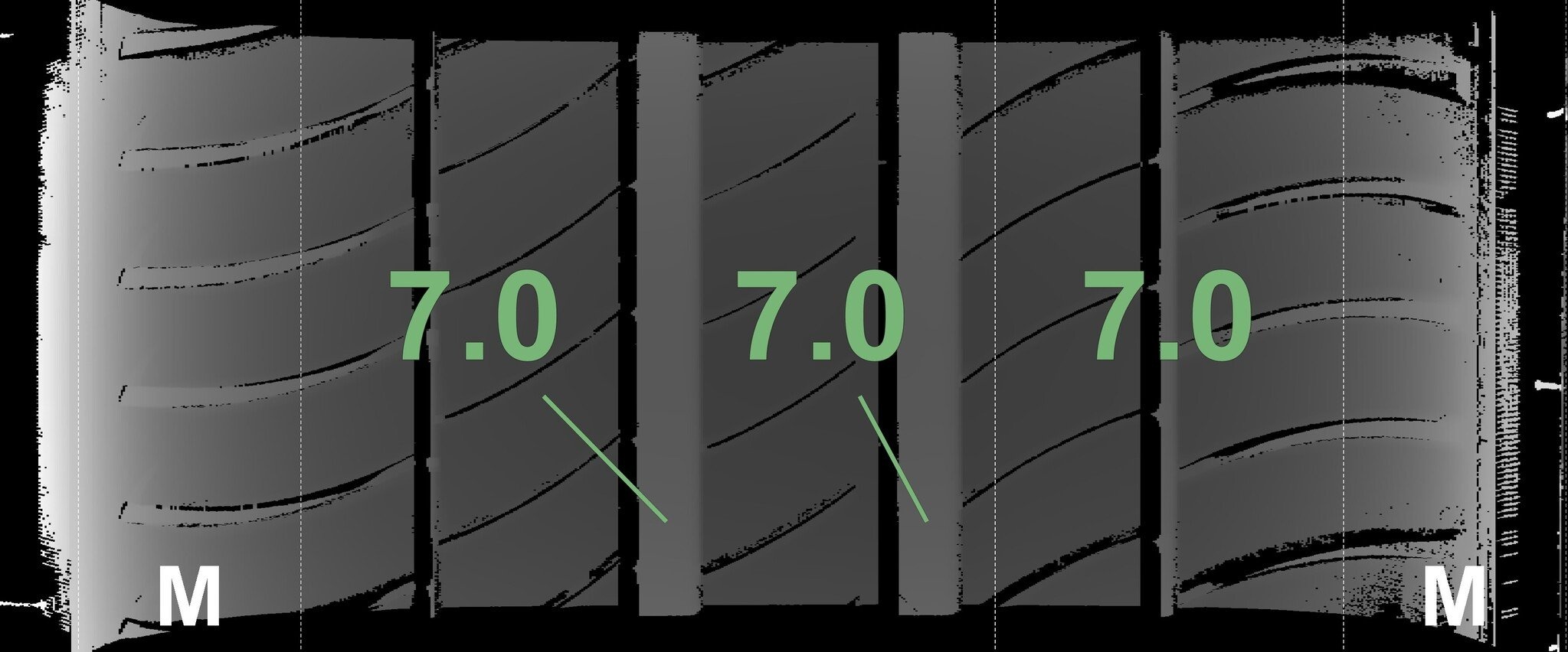 Zustand | Profiltiefe | DOT | Vorderachse Links | Neu | 7,0 mm | 4724 |