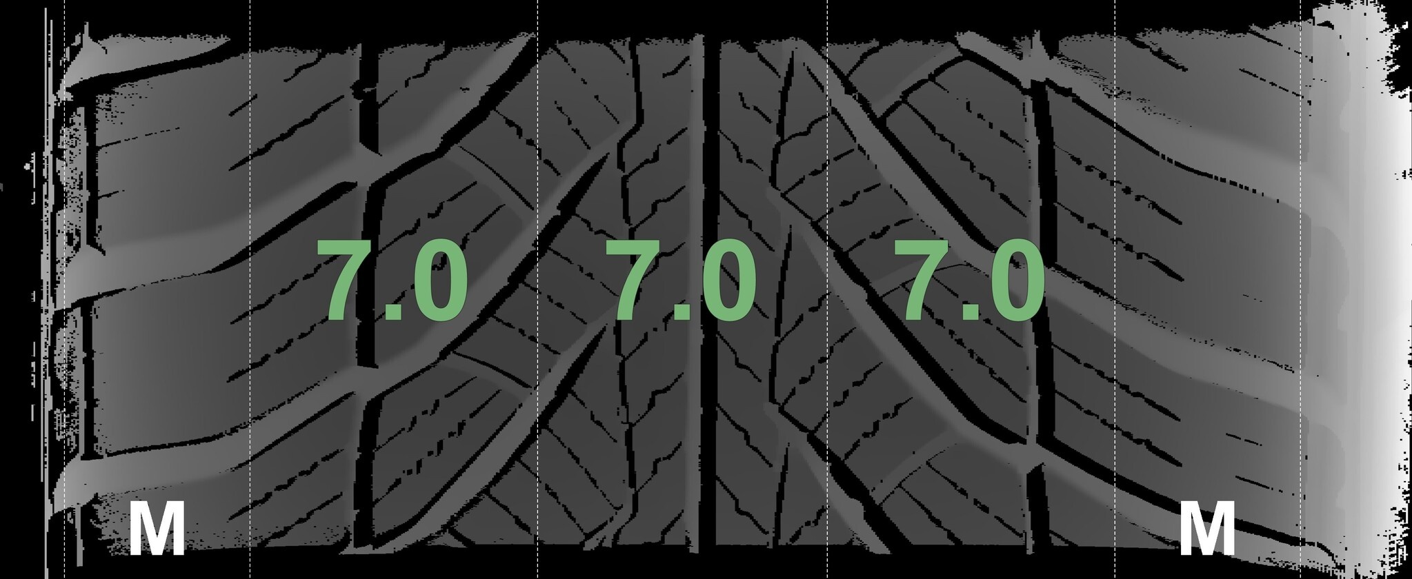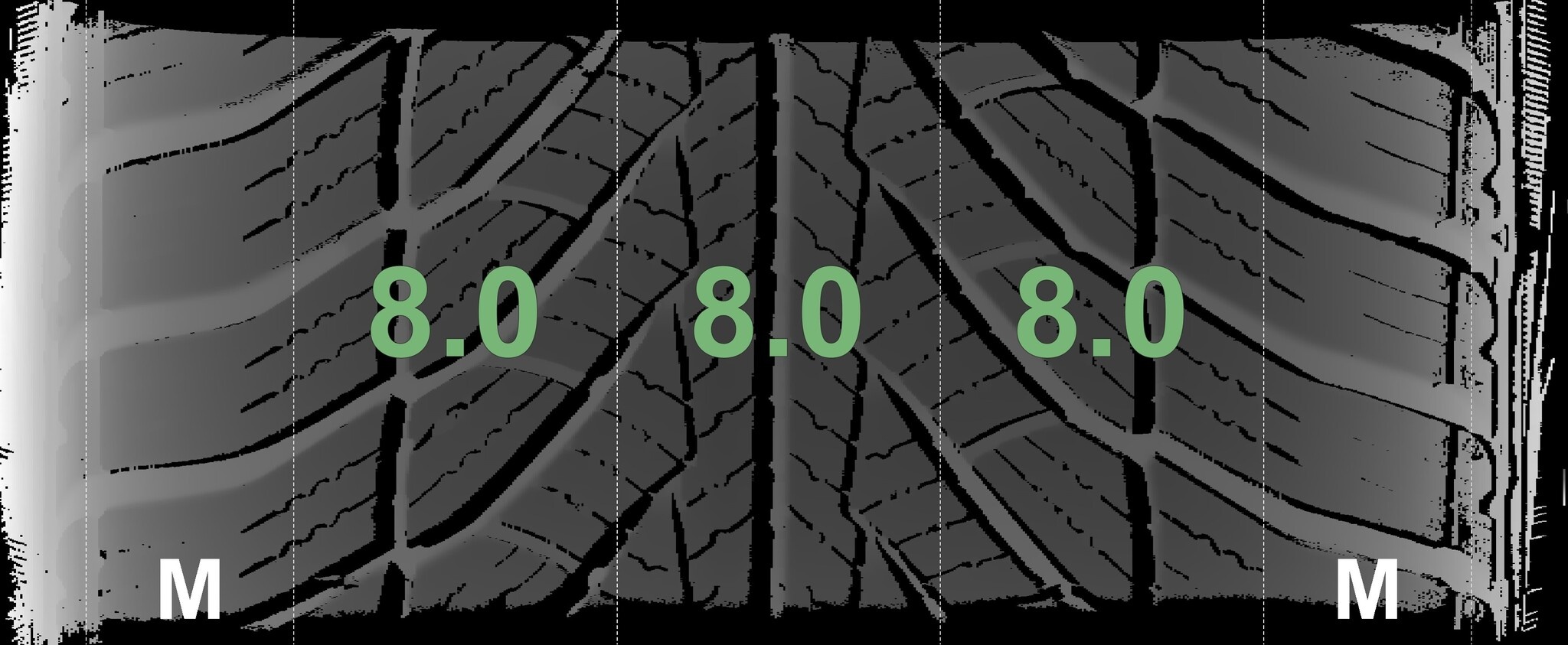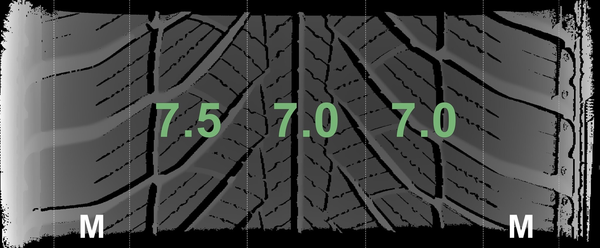 Die gemessenen Profiltiefen und Details zu den Felgen sind oben abgebildet.