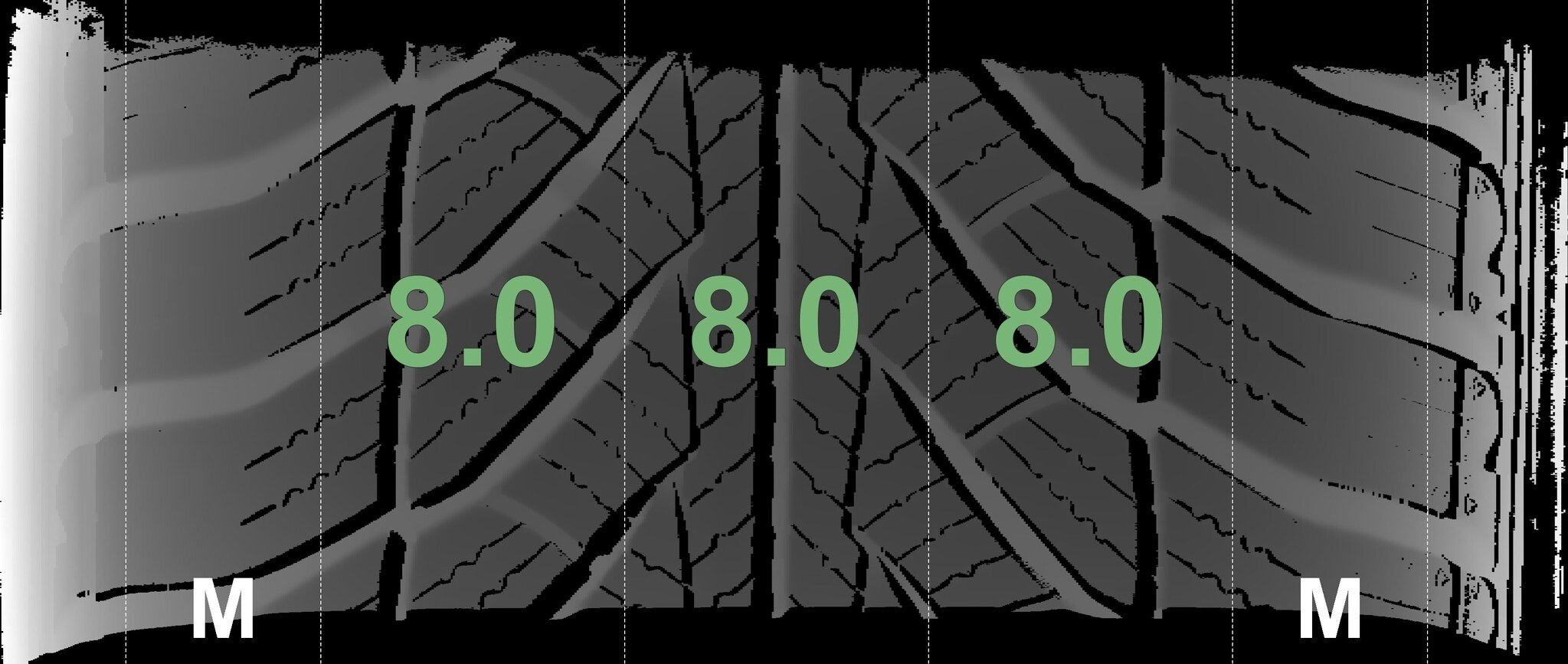 Die gemessenen Profiltiefen und Details zu den Felgen sind oben abgebildet.