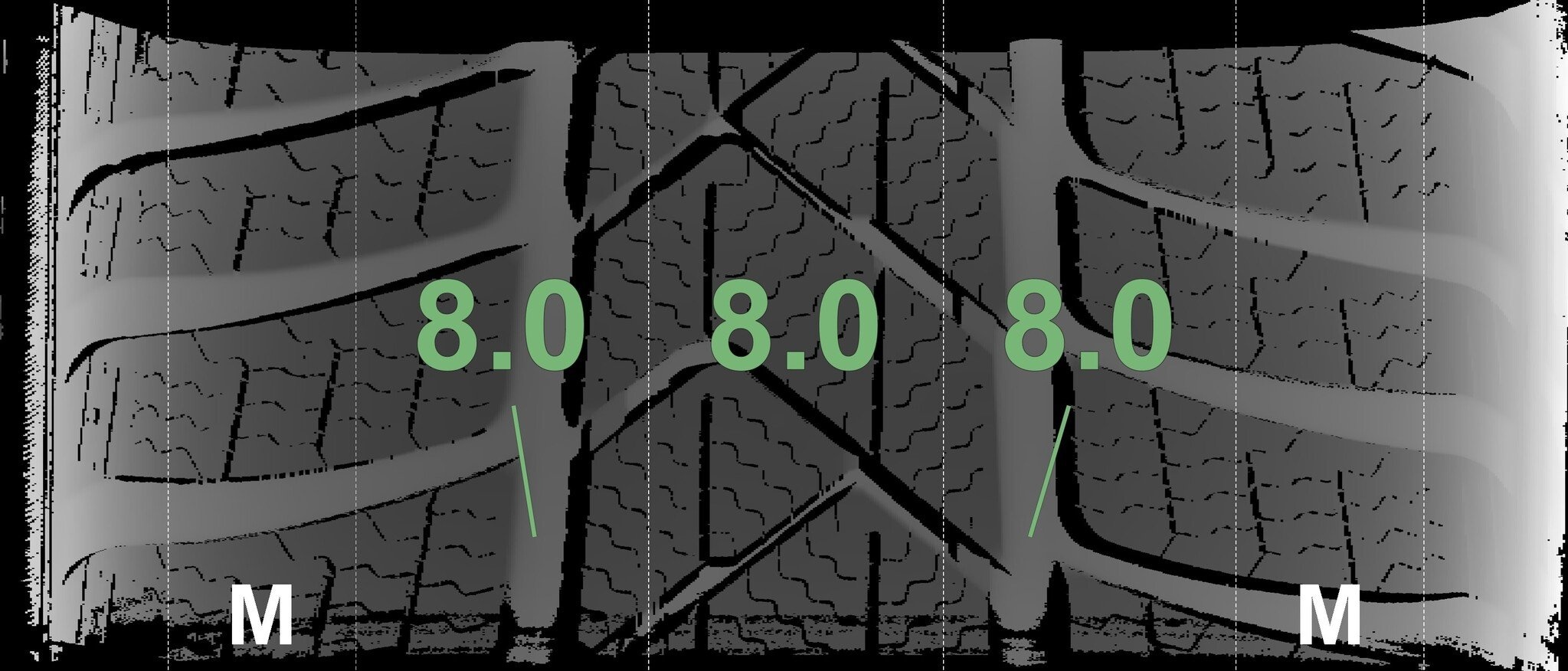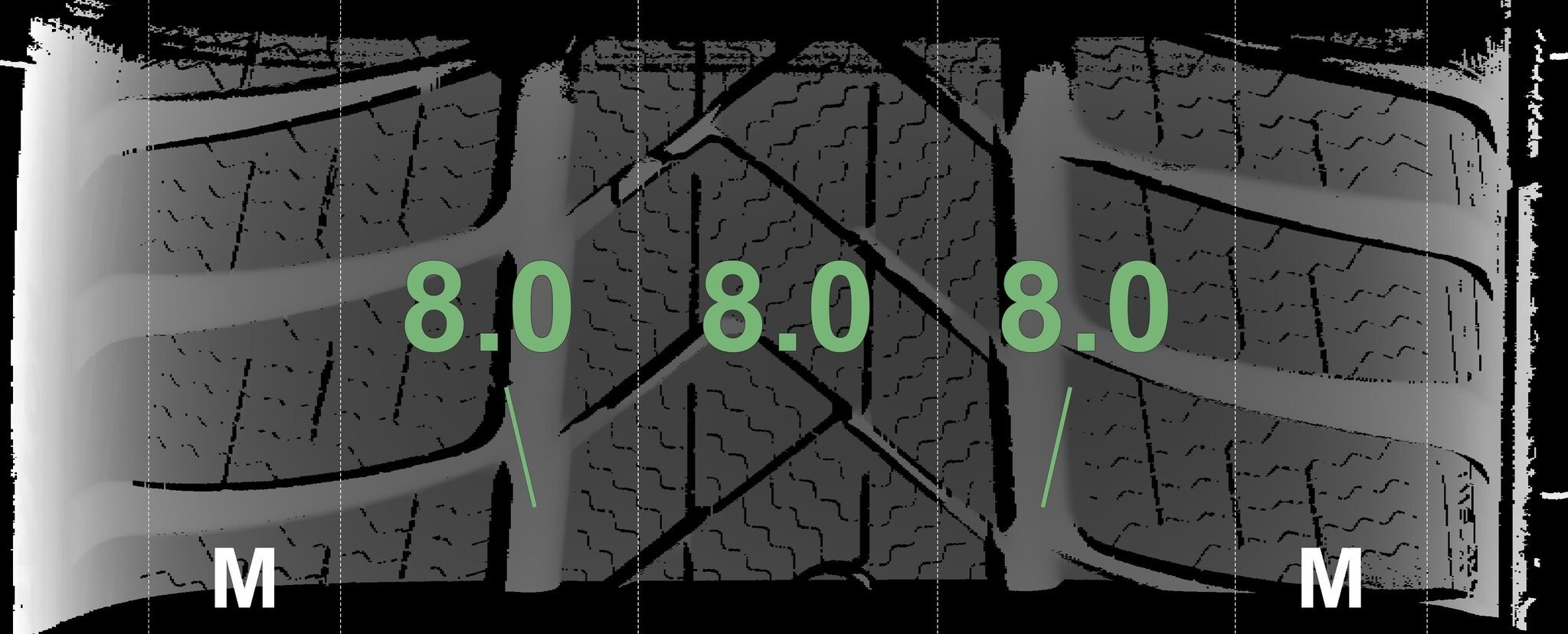 | Zustand | Profiltiefe | DOT | Vorderachse Links | Neu | 8.0 mm | 3725 |