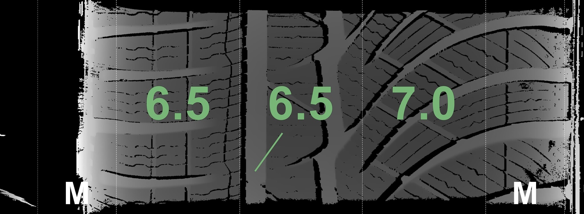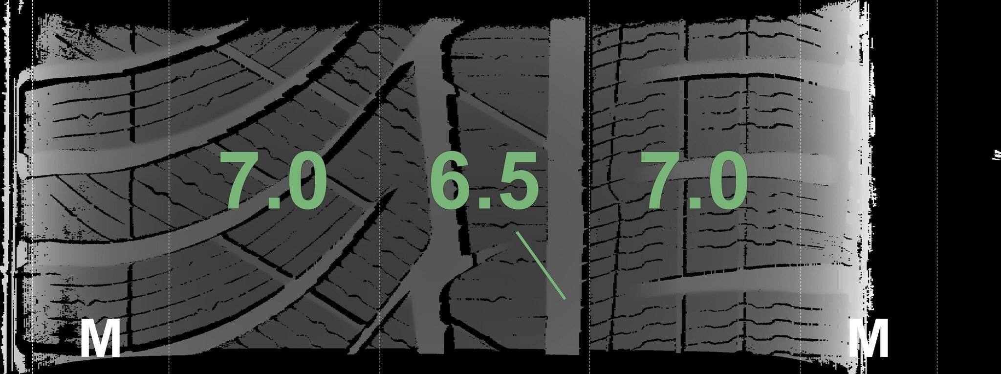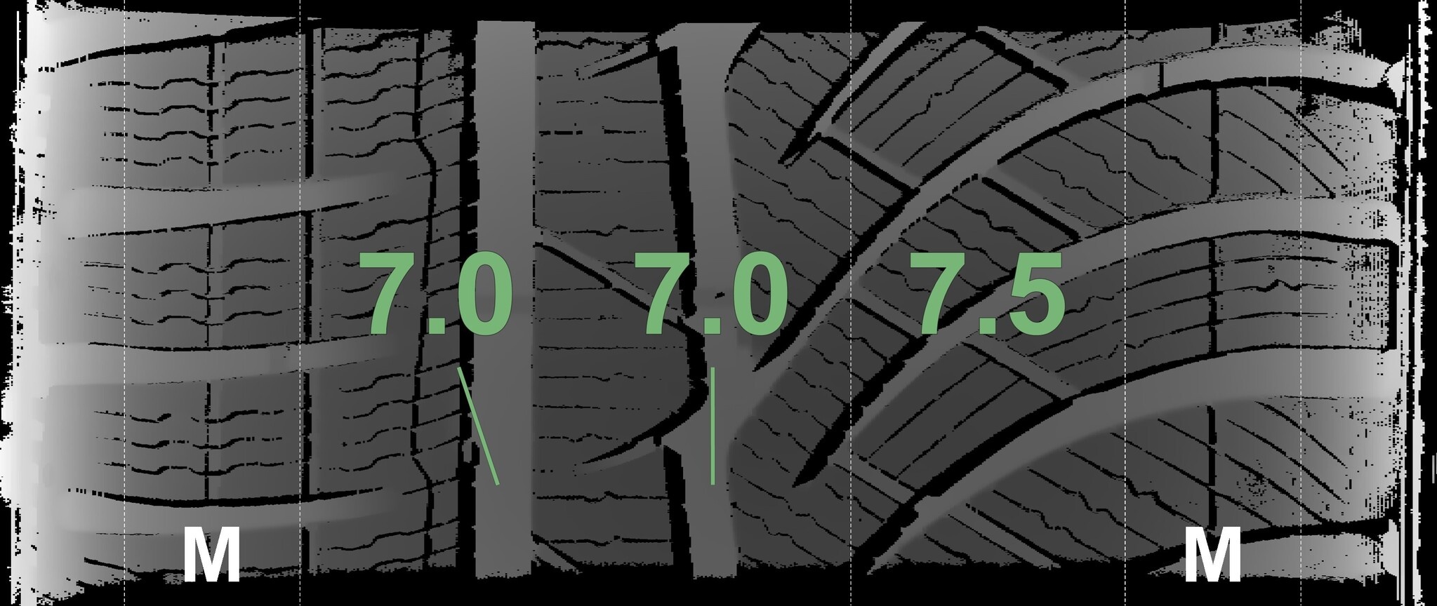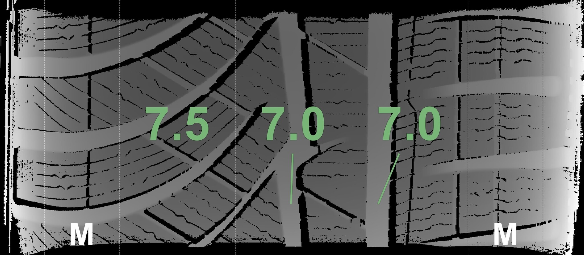 Die gemessenen Profiltiefen und Details zu den Felgen sind oben abgebildet.