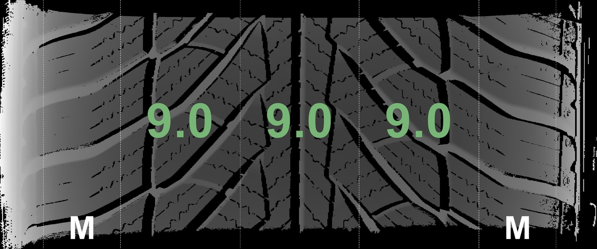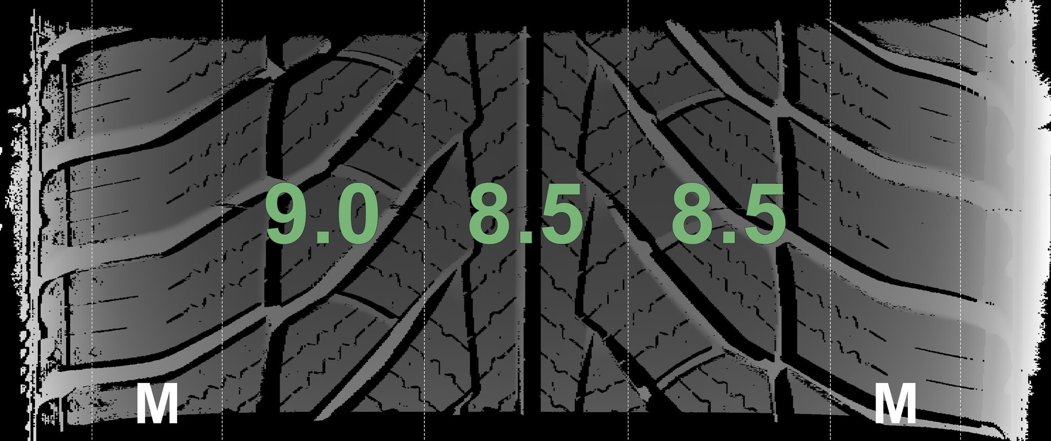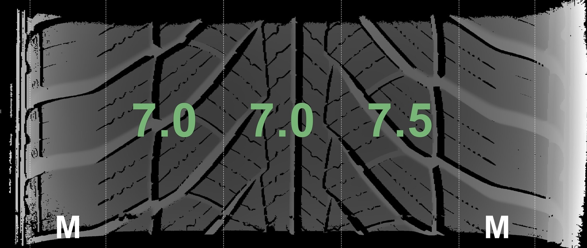 Die gemessenen Profiltiefen und Details zu den Felgen sind oben abgebildet.