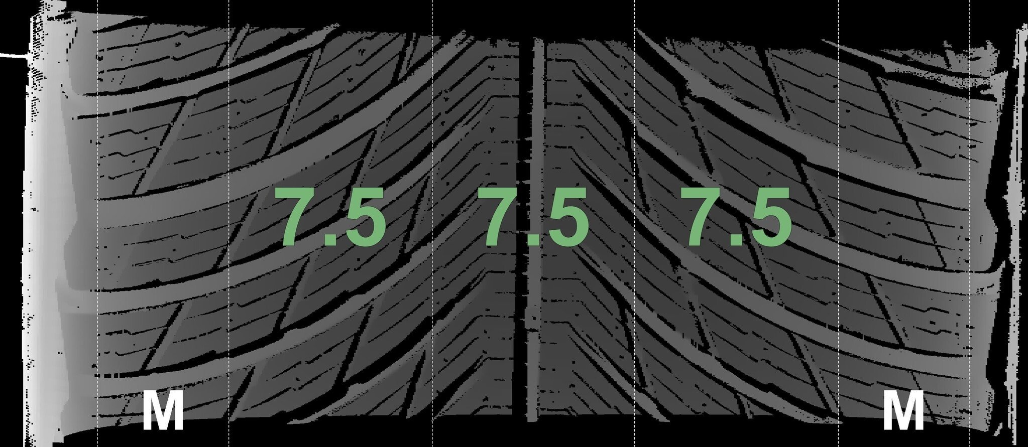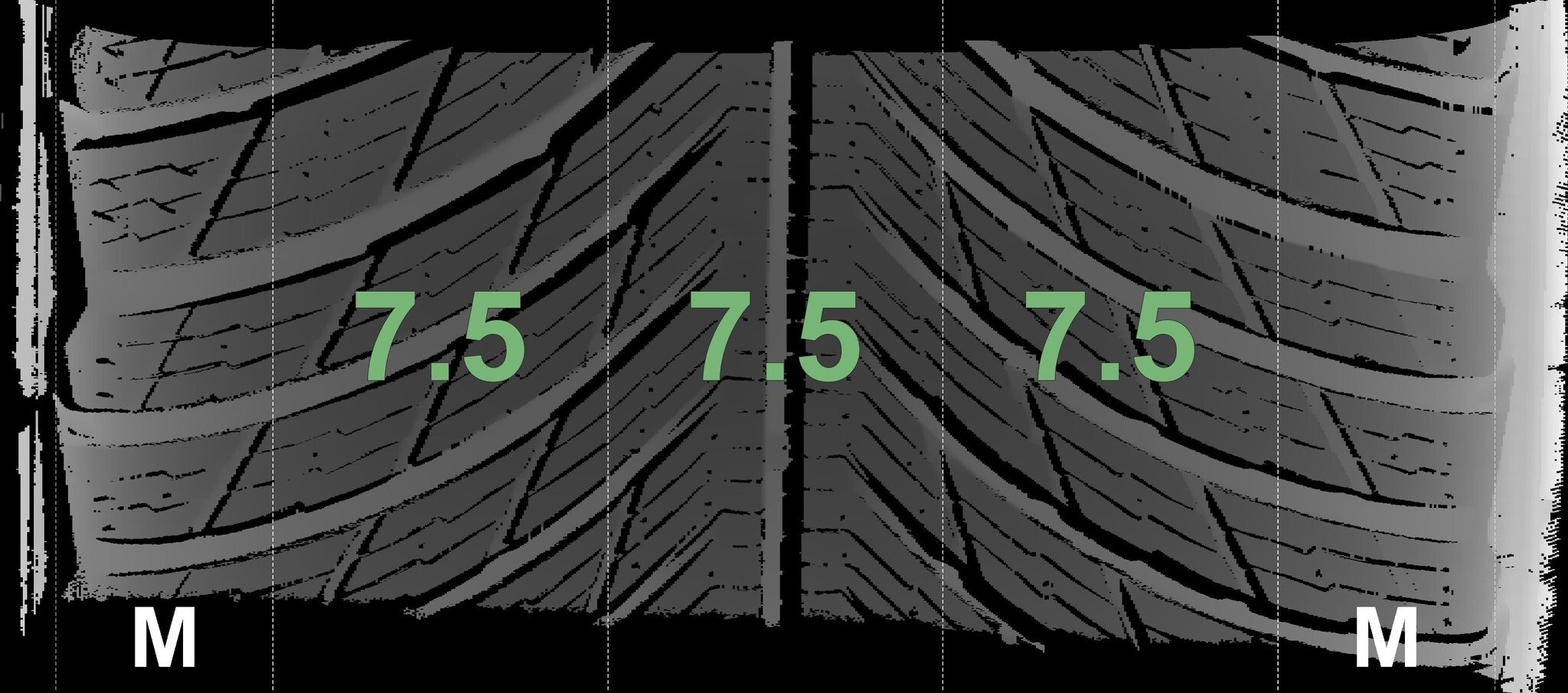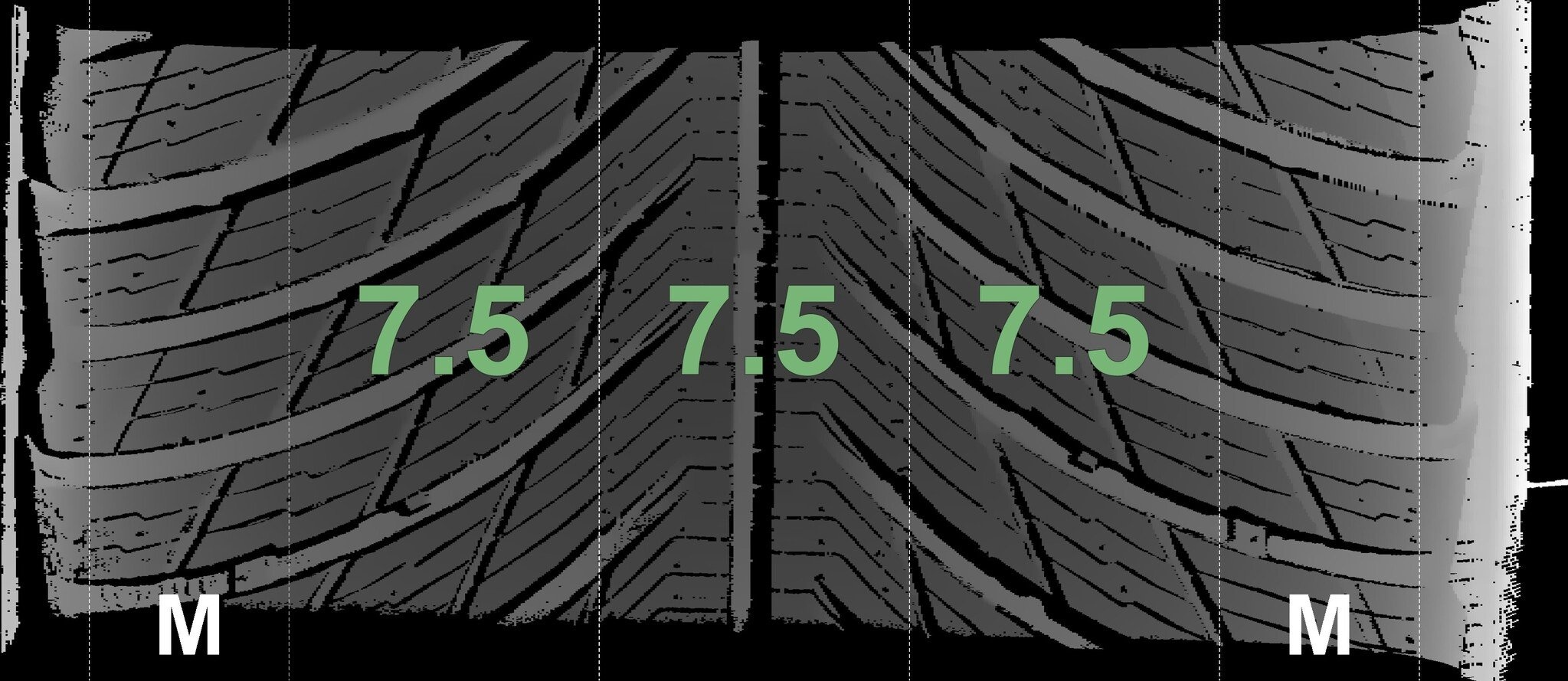 | Zustand | Profiltiefe | DOT | Hinterachse Links | Neu | 7,5 mm | 1925 |