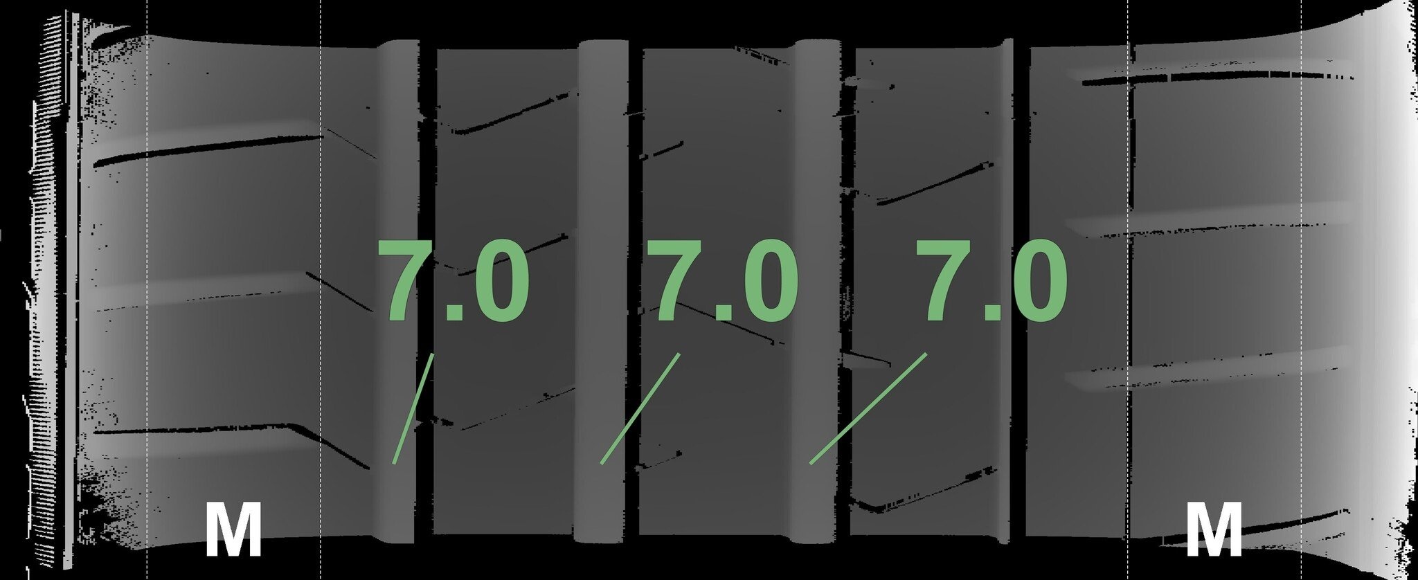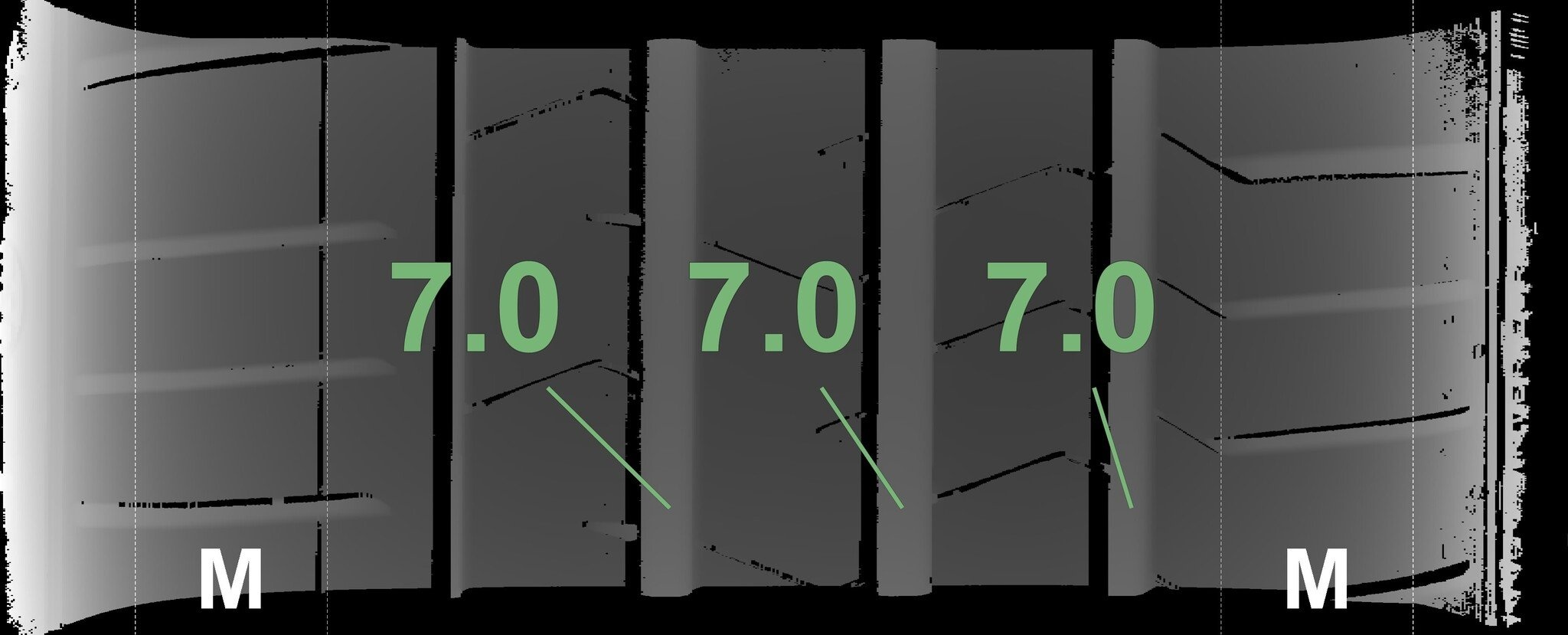 Zustand | Profiltiefe | DOT | Hinterachse Rechts | Neu | 7,0 mm | 0125 |