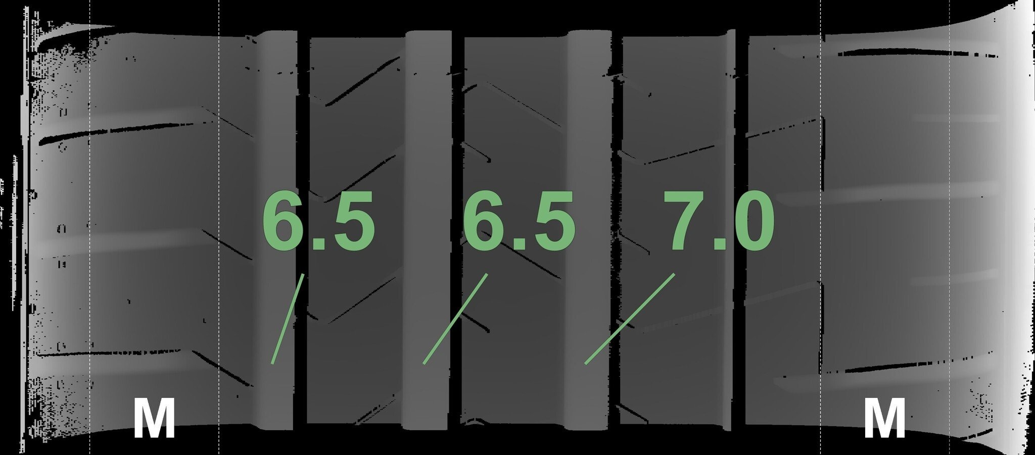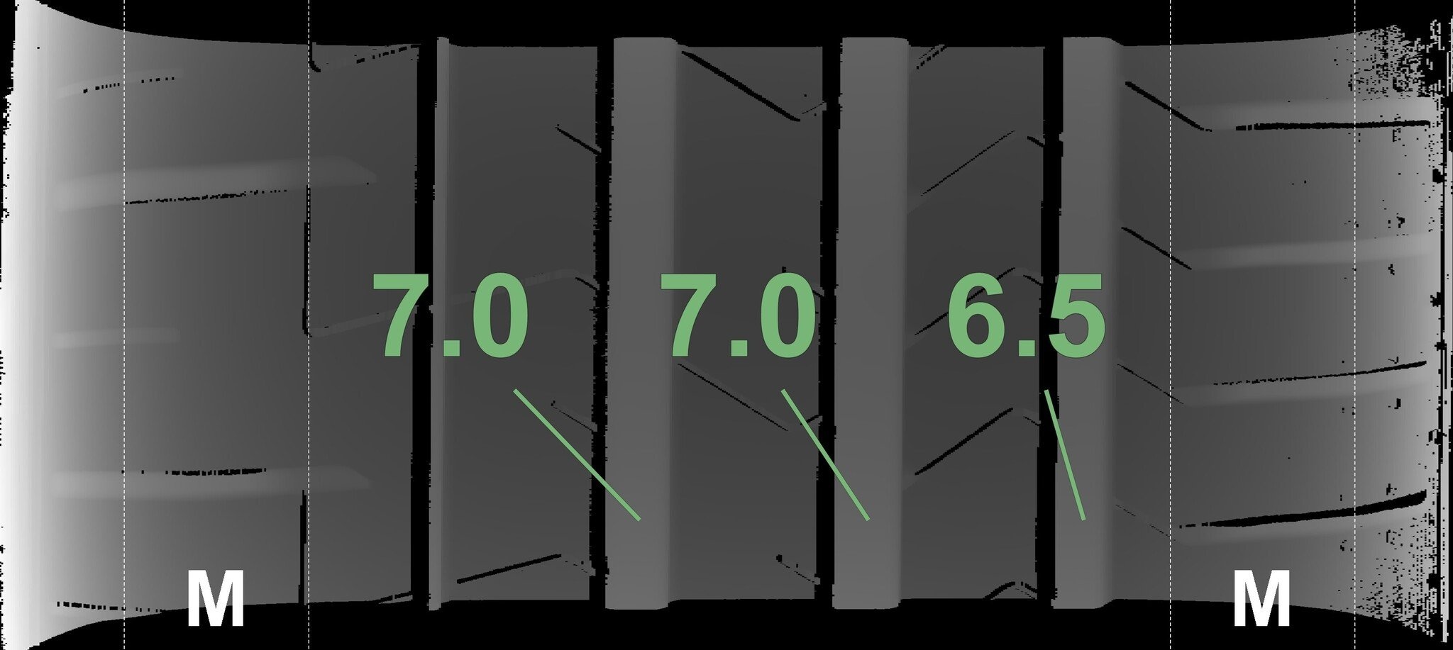 Die gemessenen Profiltiefen und Details zu den Felgen sind oben abgebildet.